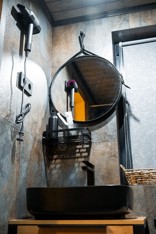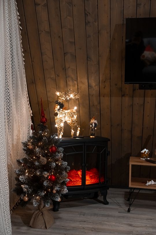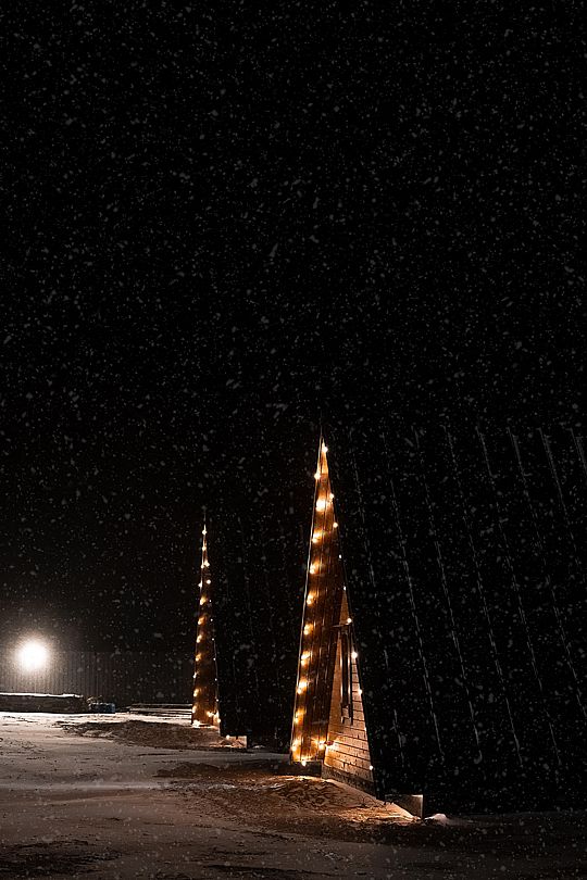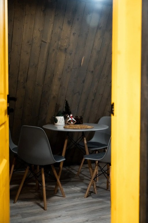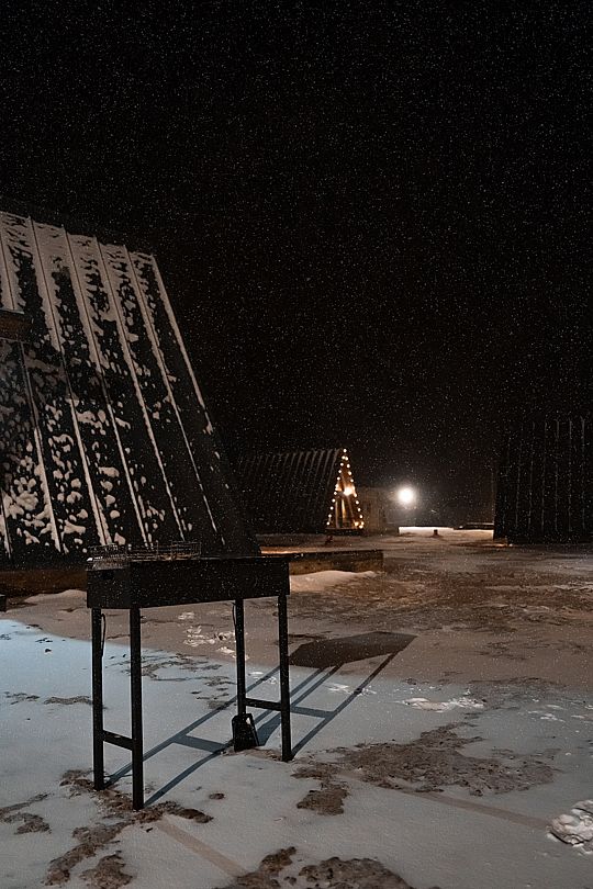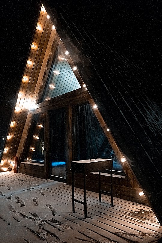 Рядом с домами — зона барбекю с мангалом, шампурами и решётками. На просторной террасе есть стол и стулья для приятного времяпрепровождения с чашечкой кофе или бокалом вина. Предоставляются тёплые пледы для вечеров у огня.