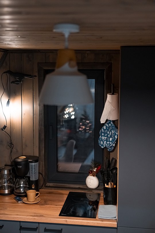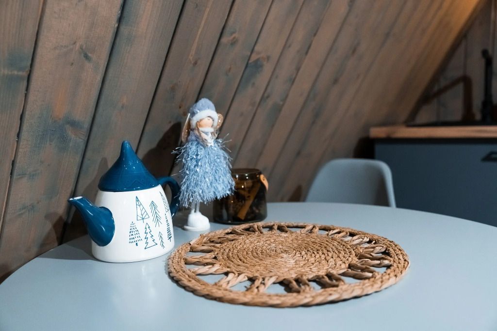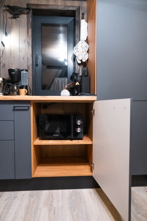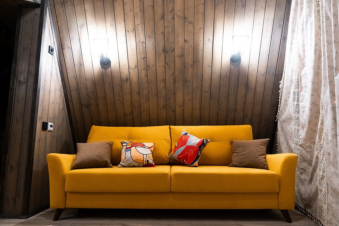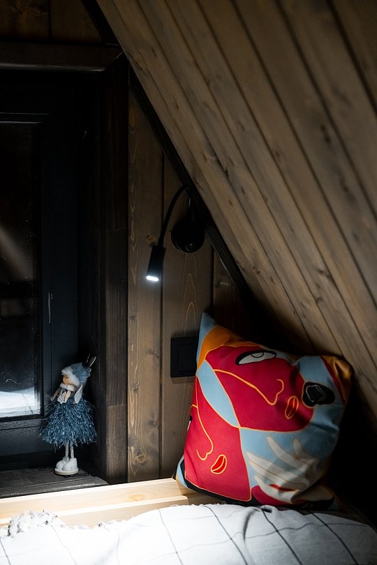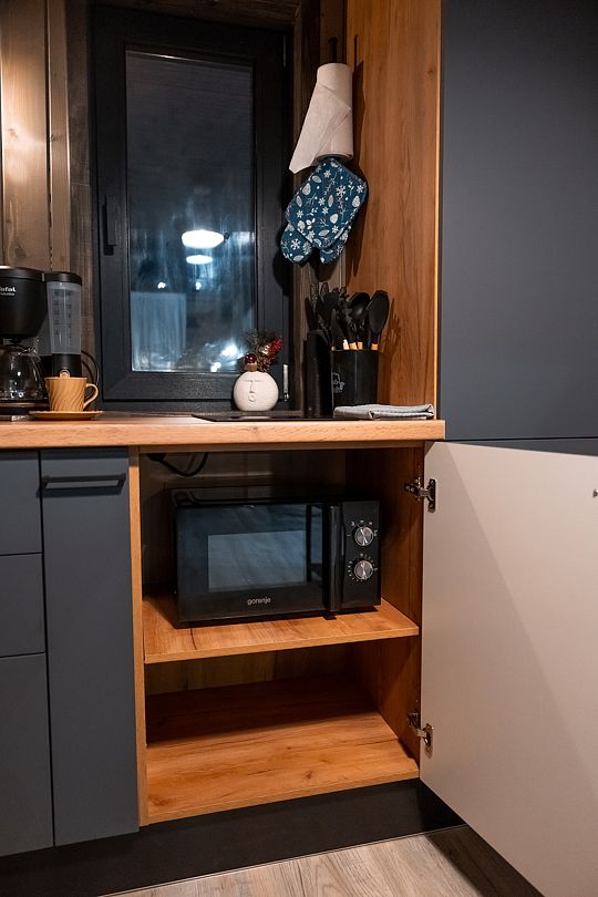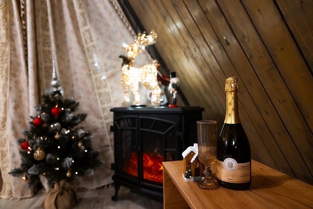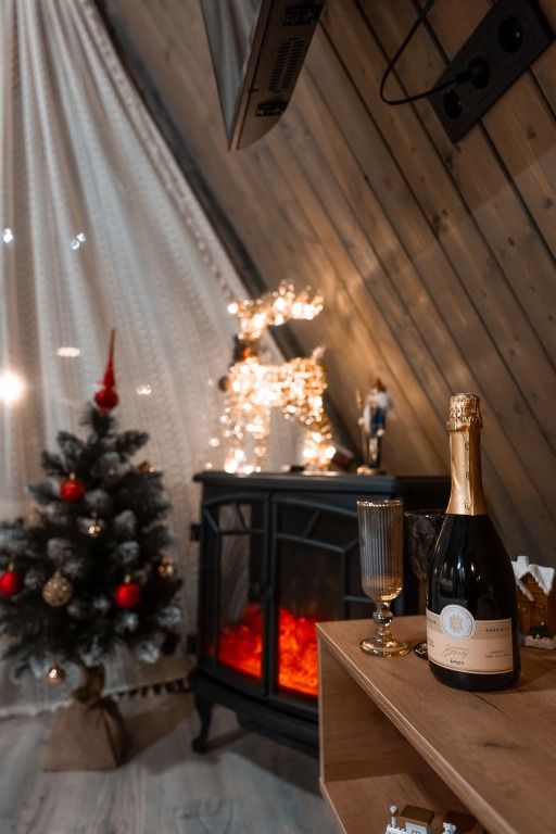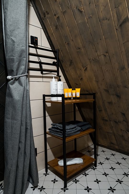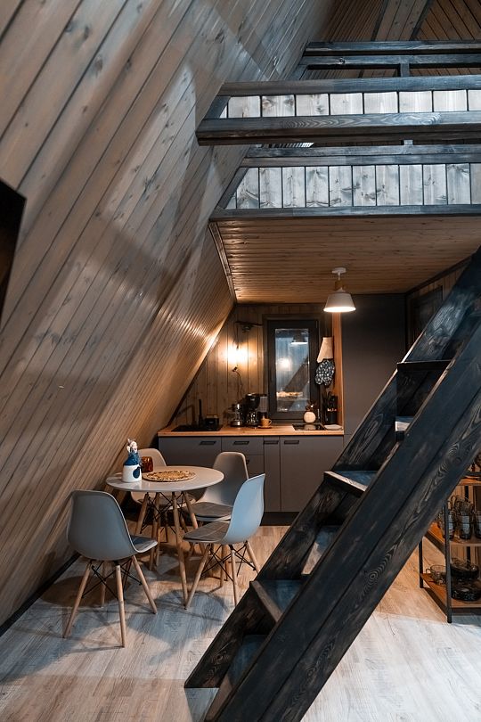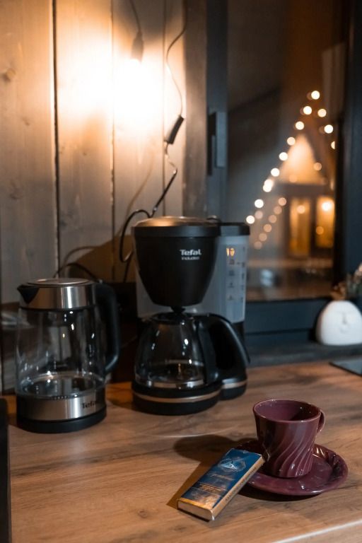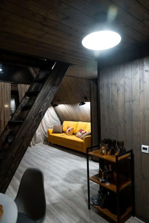 В каждом доме имеется: полностью оборудованная кухня-гостиная с полноценным раскладным диваном на 2 спальных места. В распоряжении гостей столовые приборы, кастрюли, сковородки, чайник, микроволновка, холодильник, плита. Для любителей кофе имеется кофемашина. На втором этаже большая двуспальная кровать с ортопедическим матрасом. Мягкое постельное белье. При необходимости можно оборудовать 5 спальное место, за дополнительную стоимость.