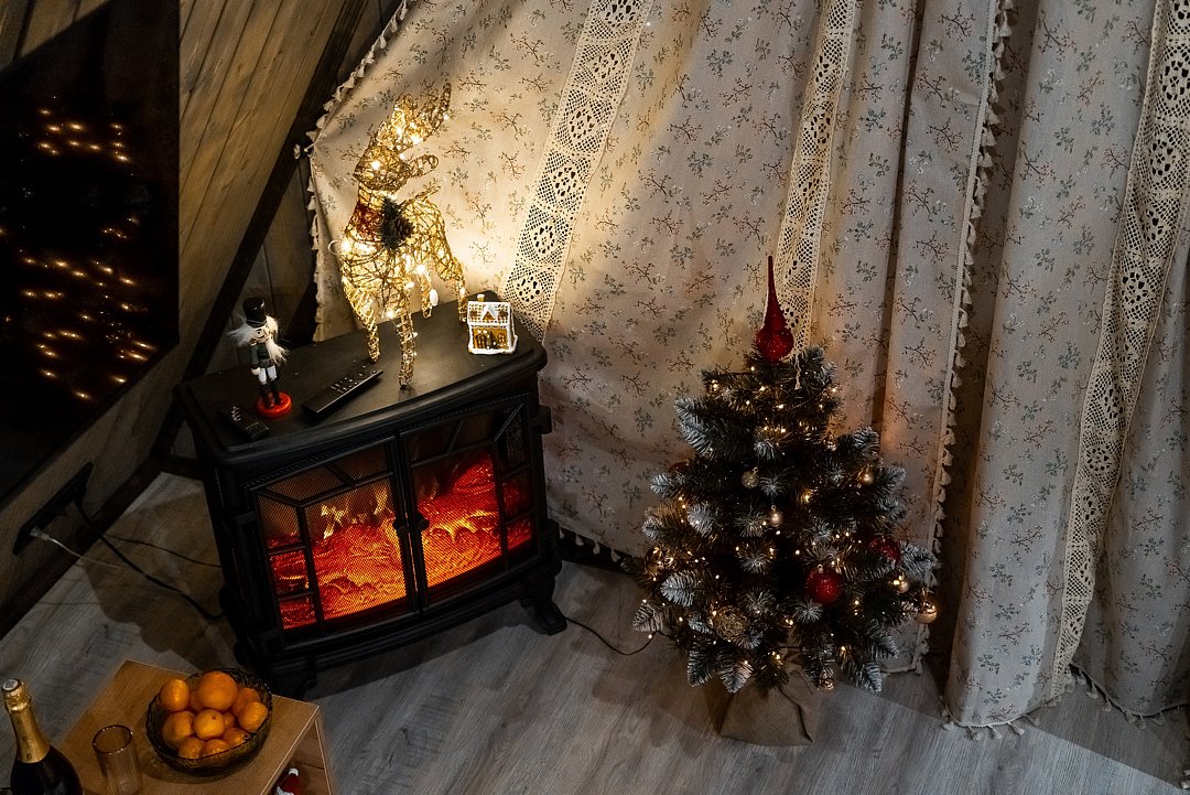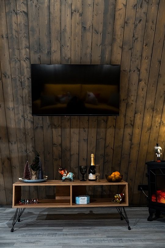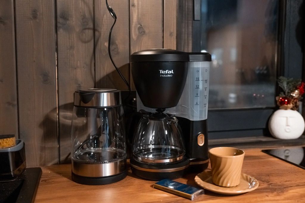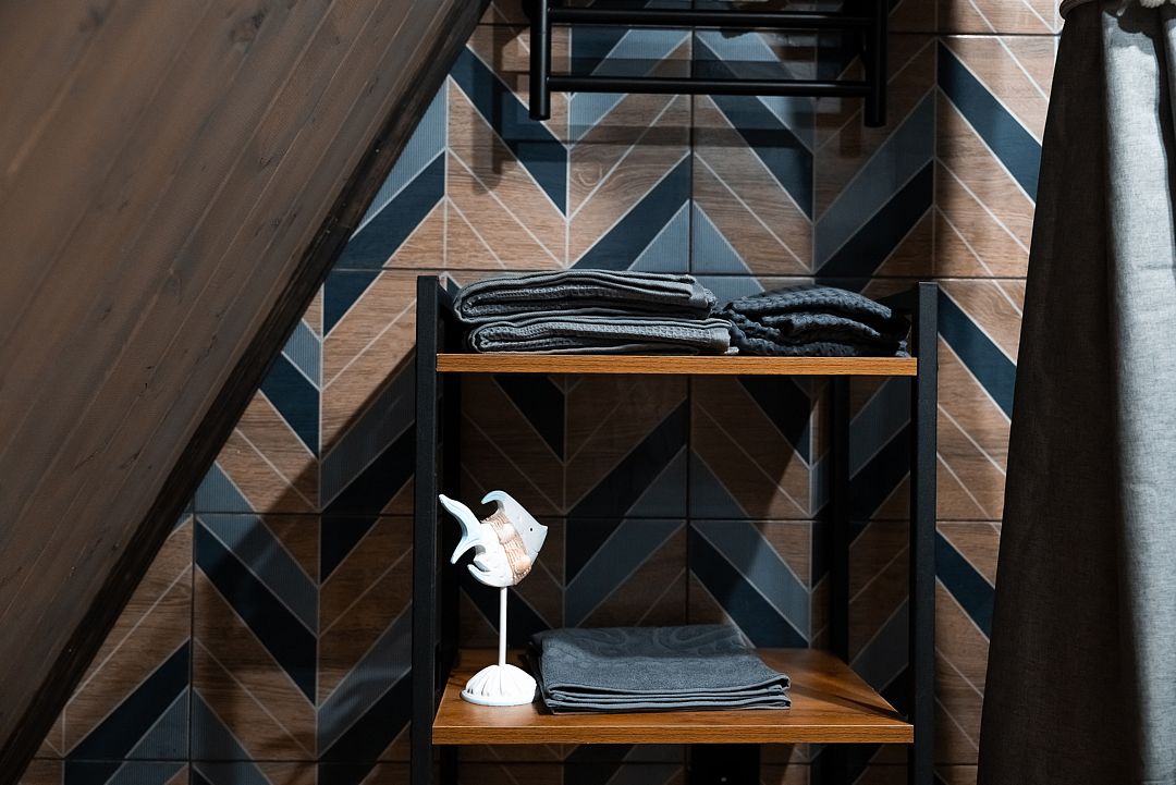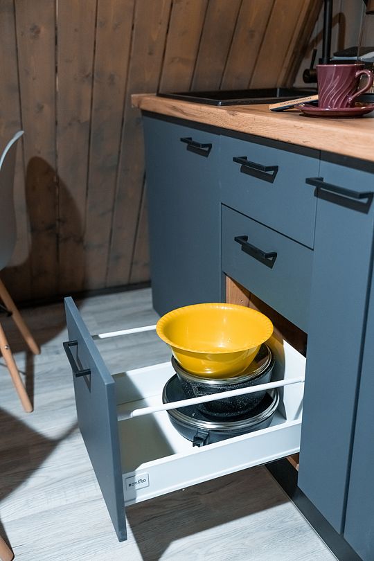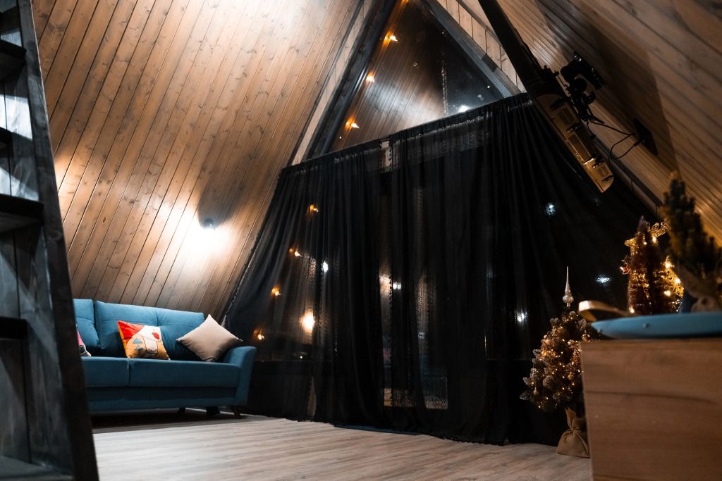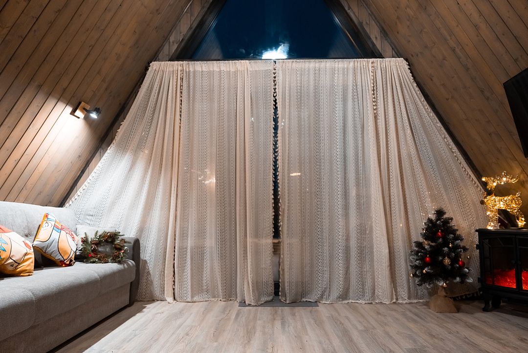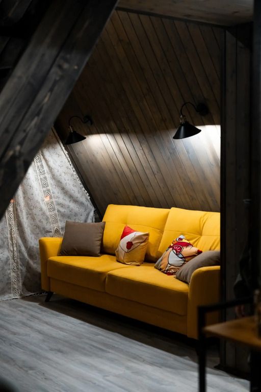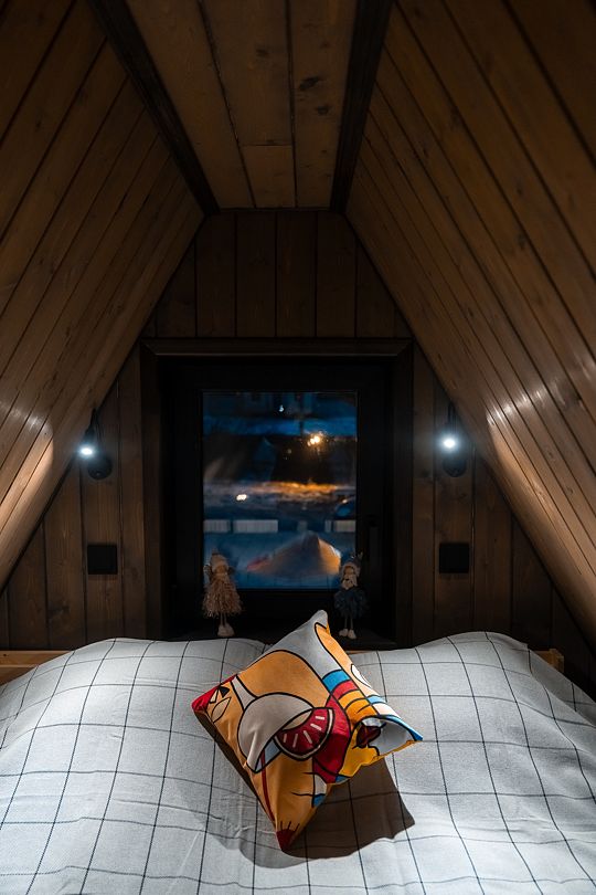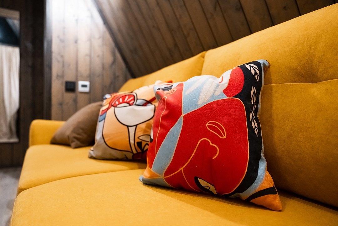 В каждом доме имеется: полностью оборудованная кухня-гостиная с полноценным раскладным диваном на 2 спальных места. В распоряжении гостей столовые приборы, кастрюли, сковородки, чайник, микроволновка, холодильник, плита. Для любителей кофе имеется кофемашина. На втором этаже большая двуспальная кровать с ортопедическим матрасом. Мягкое постельное белье. При необходимости можно оборудовать 5 спальное место, за дополнительную стоимость.
