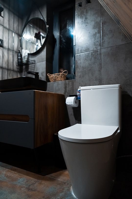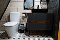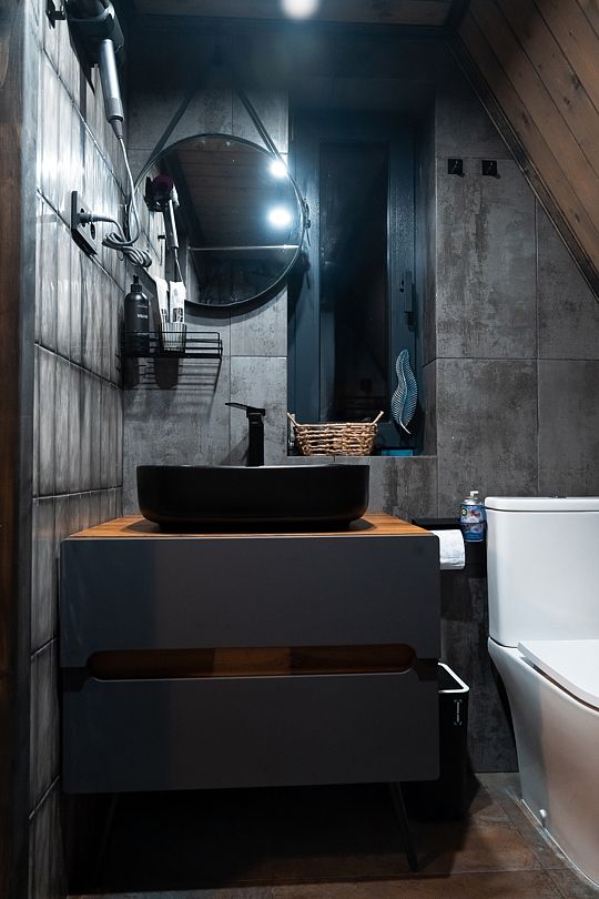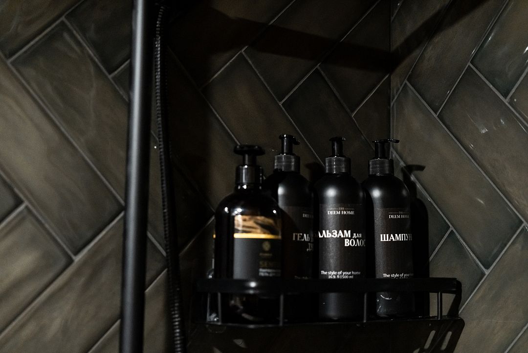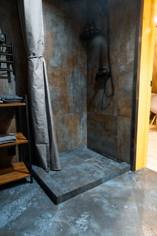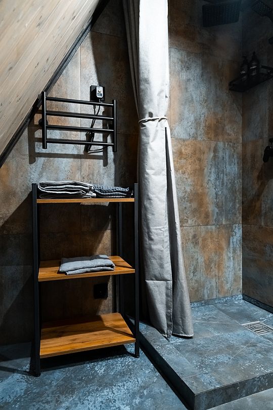 Ванная комната с душем, туалетом и раковиной. Полотенца, гель для душа/шампунь/мыло, фен, банные халаты, тапочки, зубные щётки с зубной пастой.