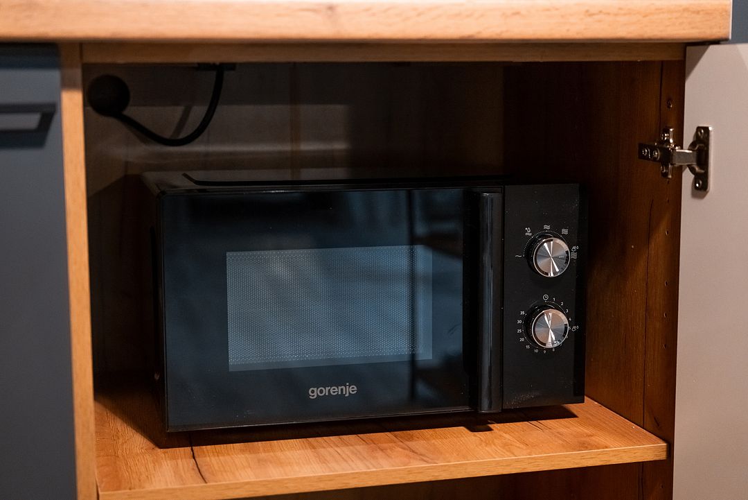 В Вашем распоряжении столовые приборы, кастрюли, сковородки, чайник, микроволновка, холодильник, плита.