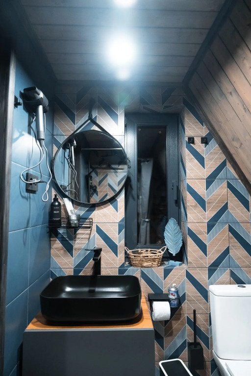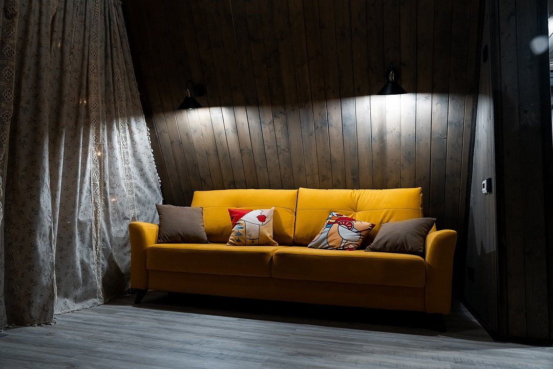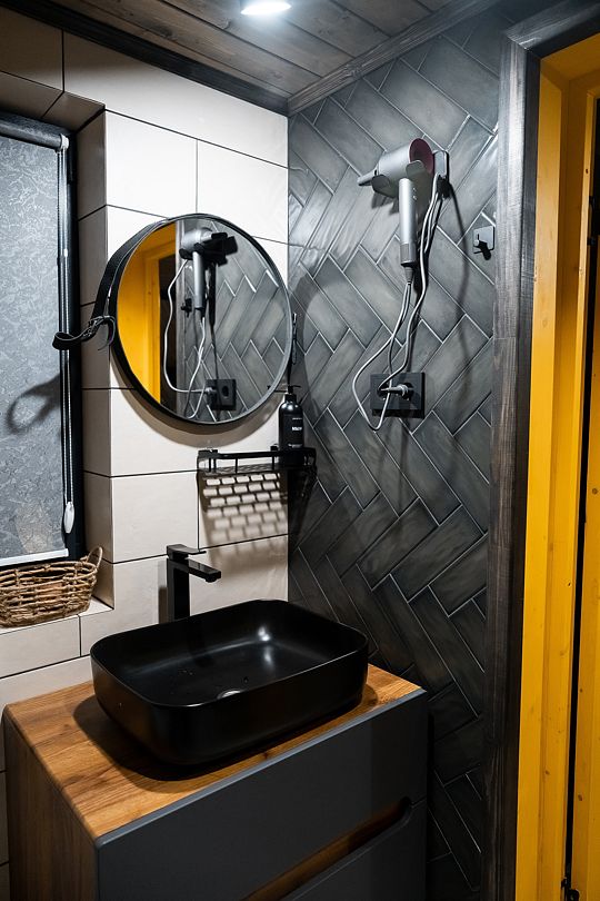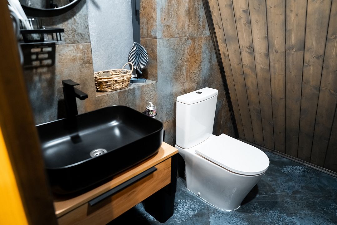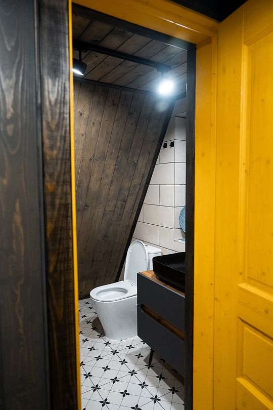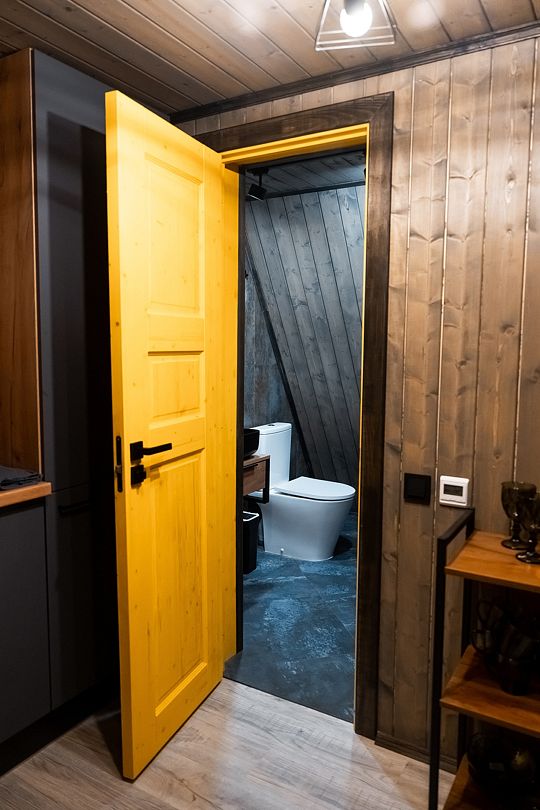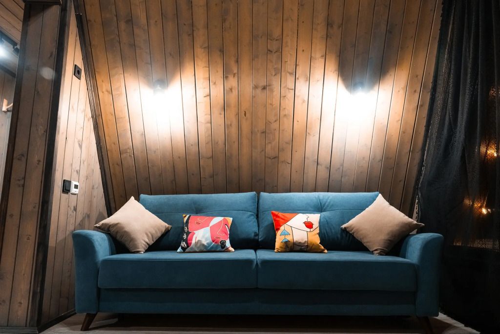 В каждом доме имеется: полностью оборудованная кухня-гостиная с полноценным раскладным диваном на 2 спальных места