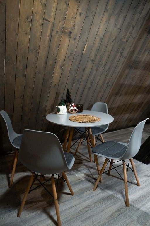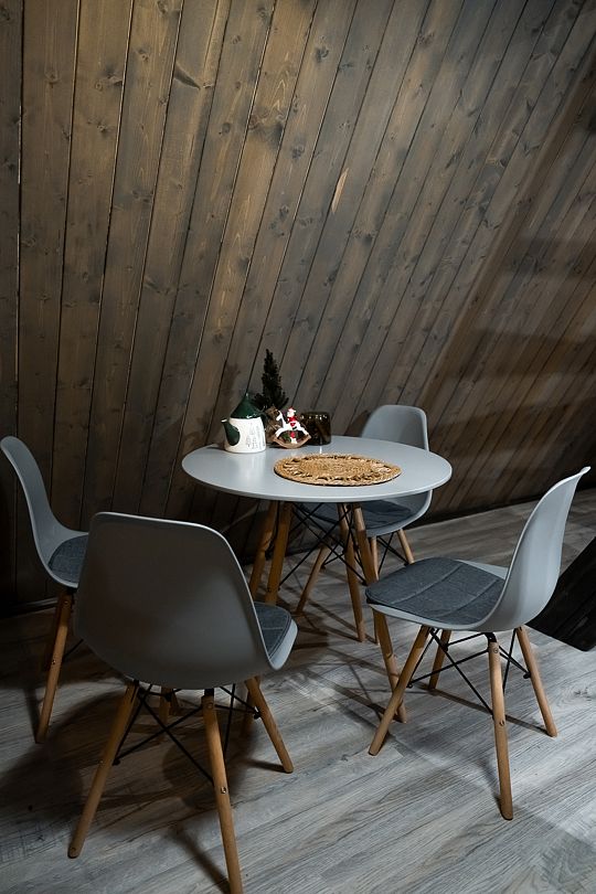 Рядом с домом уютная зона барбекю. Мангал, шампура и решётки. Теплые пледы для посиделок у огня — в Вашем распоряжении. На просторной террасе имеется стол и стулья для приятного времяпрепровождения за чашечкой кофе или бокалом игристого.