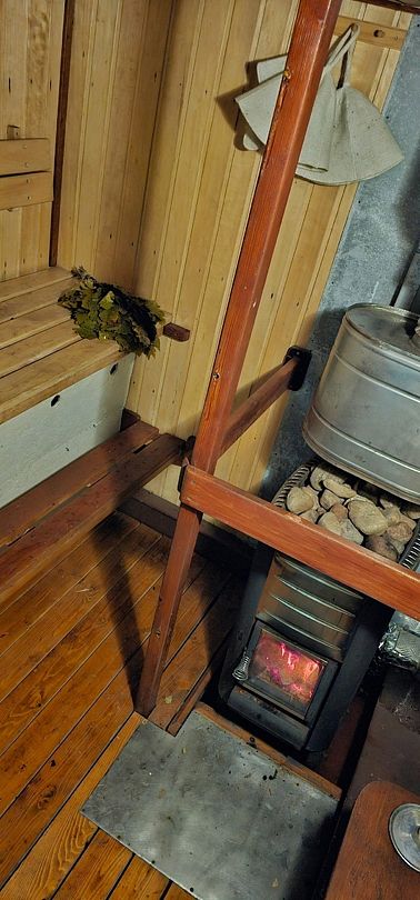 Инфраструктура: зона отдыха, обливное ведро, дубовые веникиРасположение: выход к озеруНа базе имеется уникальная баня на корабле. В зимнее время года, для особо смелых, подготавливается прорубь. У Вас есть возможность не просто попариться в бане, но проникнуться особый атмосферой. Почувствовать себя капитаном корабля. В каюте корабля Вас ждёт чаепитие с карельским мёдом и душевная атмосфера у тёплого камина.