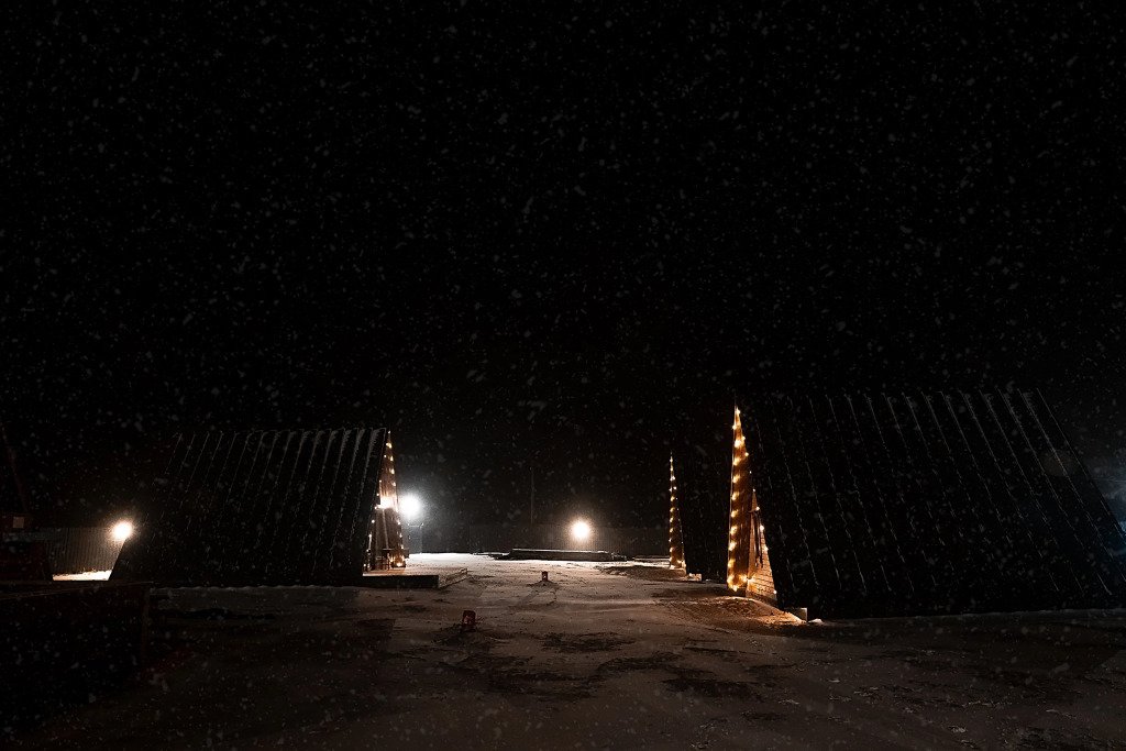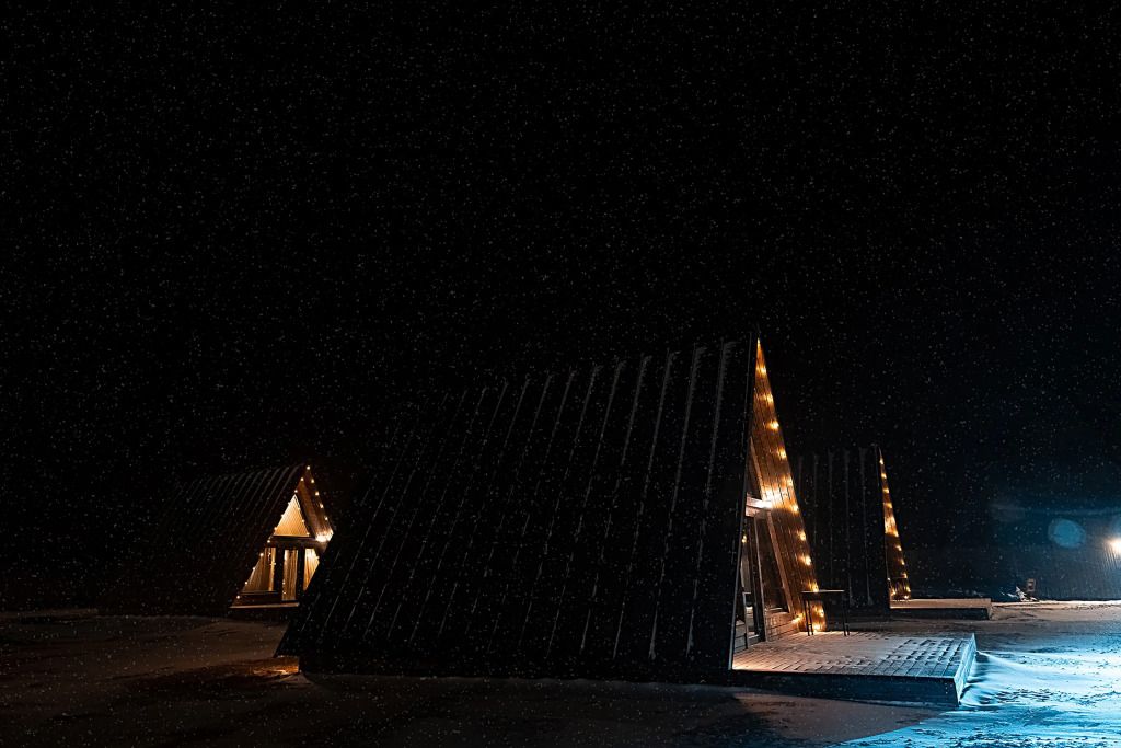 На территории базы стоят уютные глэмпинги, каждый из которых имеет полностью оборудованную кухню-гостиную, ванную комнату, все необходимые кухонные принадлежности и удобные спальные мест.