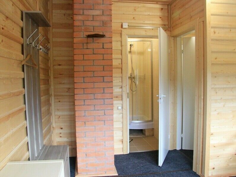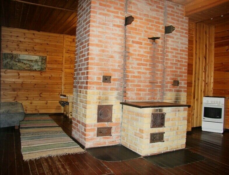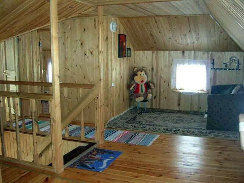 В доме: На первом этаже оборудованная кухня, гостиная с камином. На втором этаже 4 спальни: 1 спальня - двуспальная кровать; 2 спальня. - двуспальная и односпальная кровать; 3 спальня. - односпальная кровать; 4 спальня - полутороспальная и односпальная кровать). Душ и туалет на двух этажах. Отопление электрическое и печное