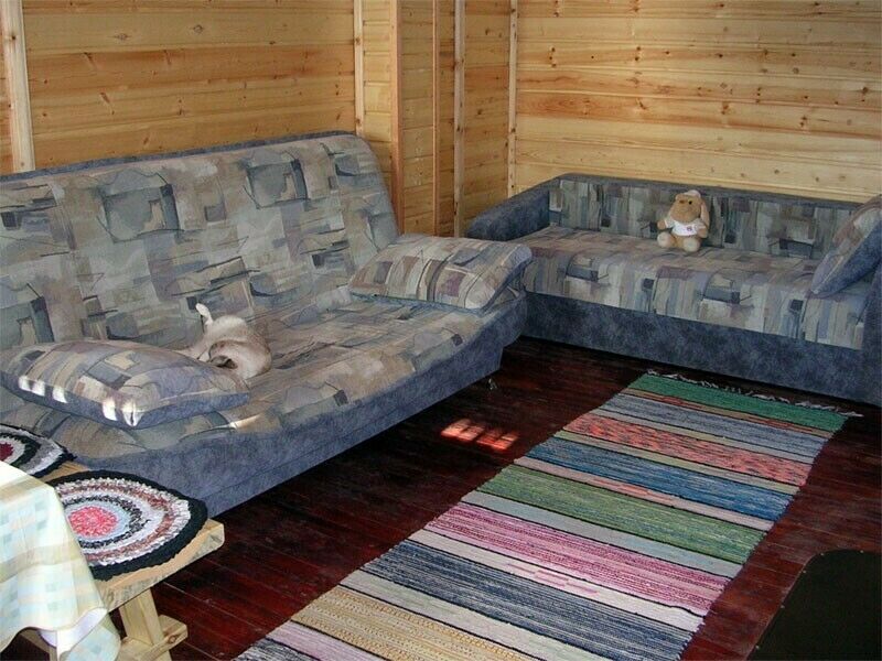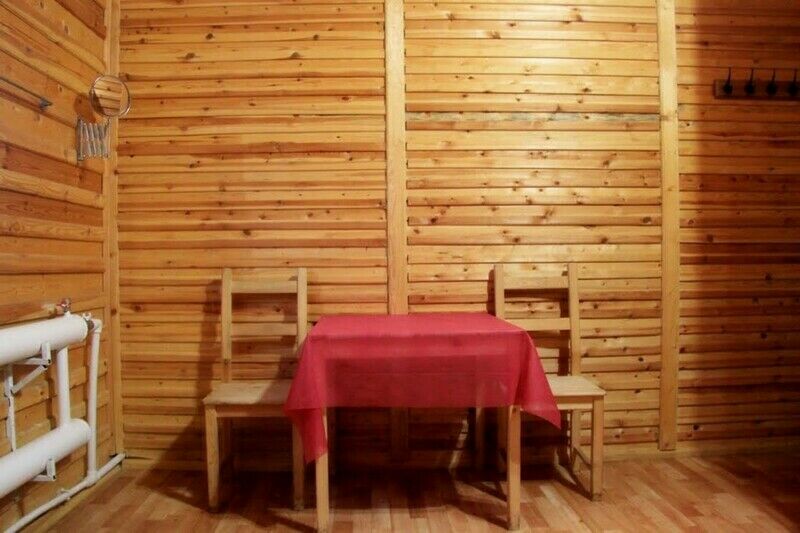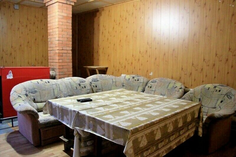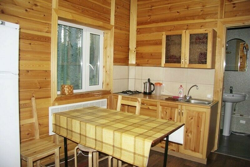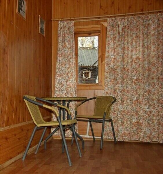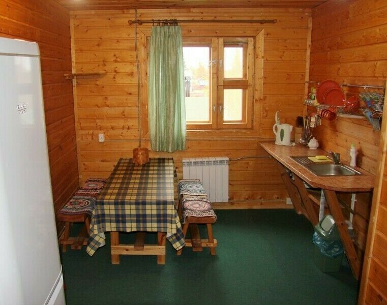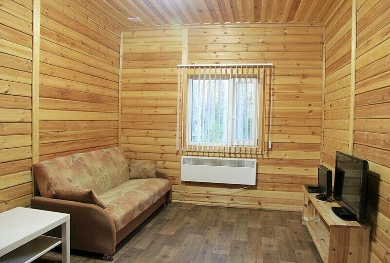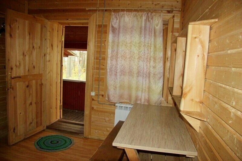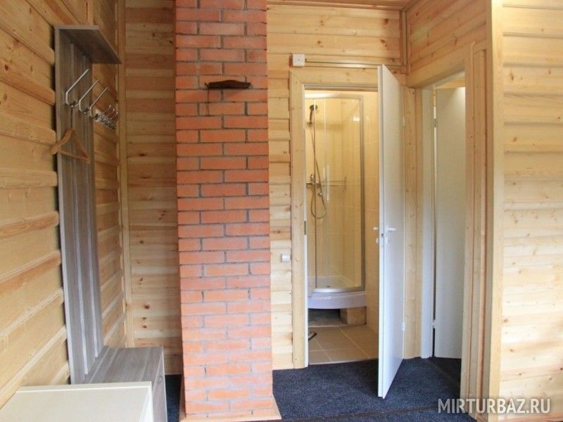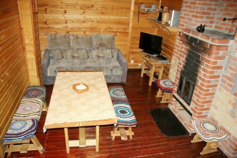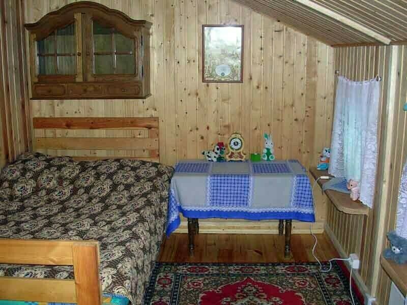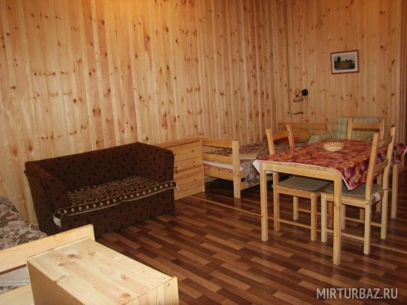 Расположен практически в лесу. Камин, оборудованное костровище для приготовления пищи и просто романтического время провождения. В гостиной мягкая мебель, стол, телевизор, муз. центр.