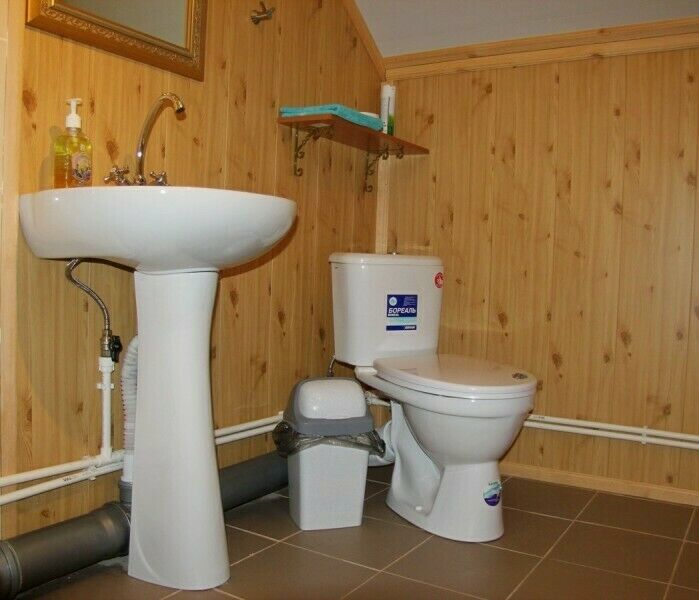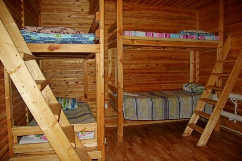 Новый дом, справа от въезда на территорию базы, с просторной верандой для уютных посиделок на открытом воздухе. Три раздельных номера на втором этаже с выходами на общую площадку. В каждом номере по две кровати, душ, туалет. На первом этаже просторная кухня с большим холодильником, телевизором и необходимыми принадлежностями. Для посетителей – гостевой туалет