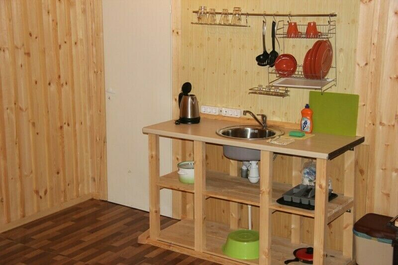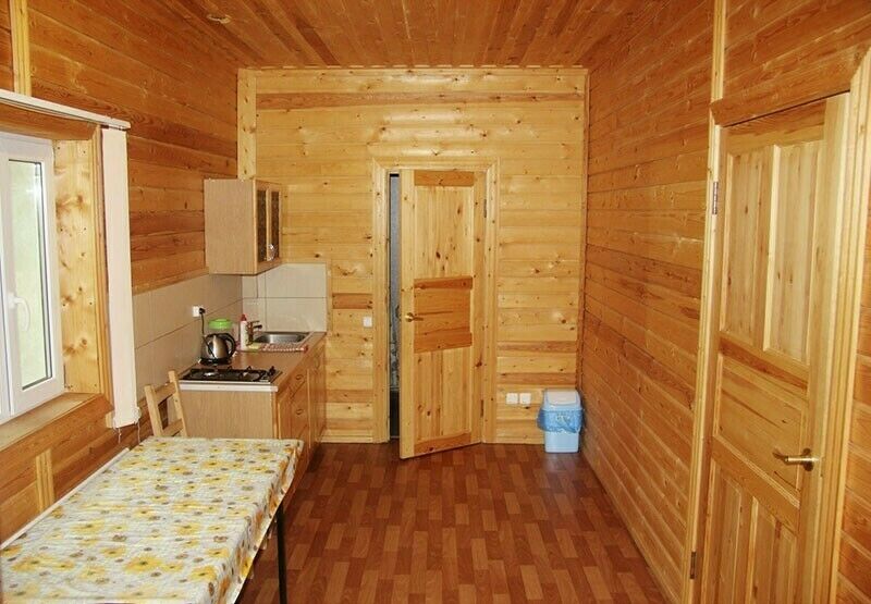 Новый дом, справа от въезда на территорию базы, с просторной верандой для уютных посиделок на открытом воздухе. Просторный номер-студия для творческих и гостеприимных людей. Отдельный вход с крыльцом, печное отопление. Две кровати, уютный мягкий диванчик, телевизор, стеллаж, оборудованная кухня, обеденный столик, душ, туалет.