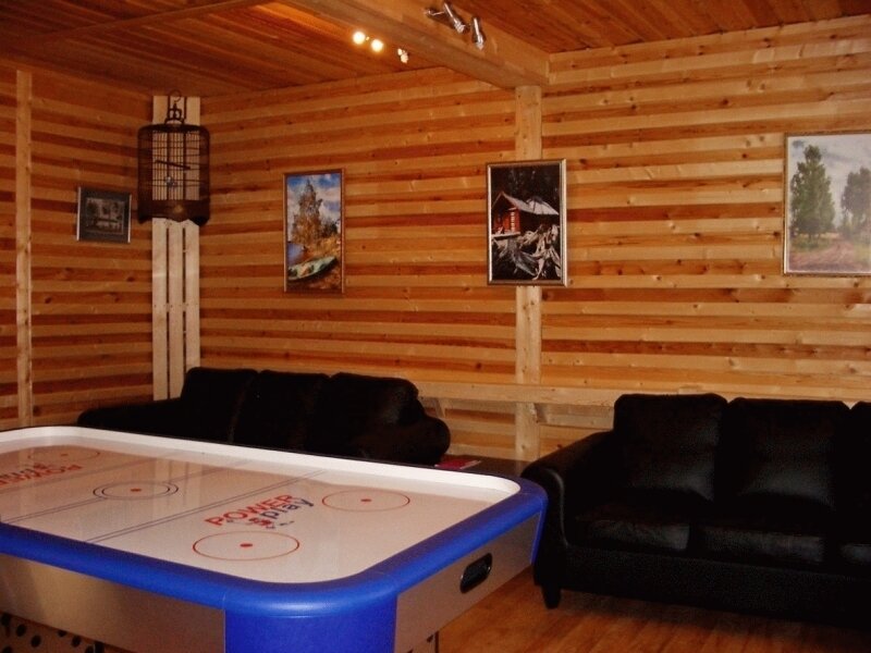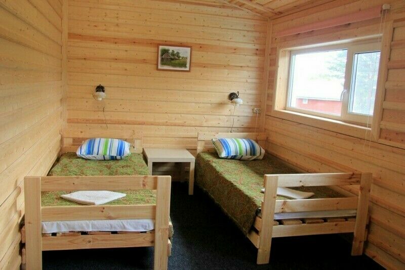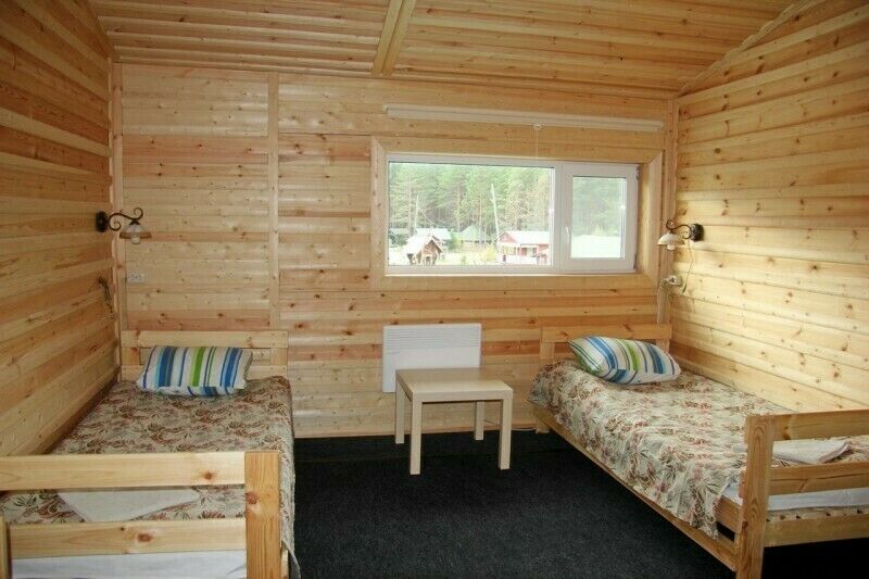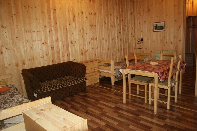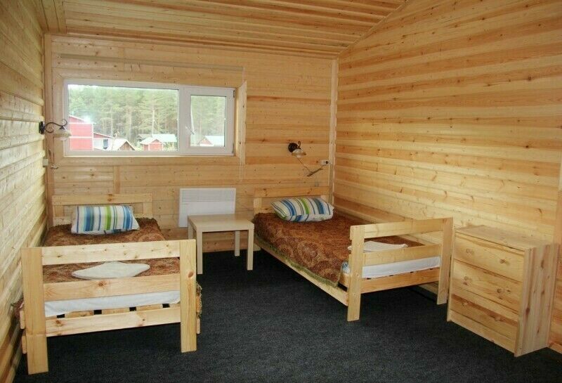 Три комнаты, в каждой по четыре спальных места, всего шесть основных мест и шесть дополнительных. Гостиная для большой компании со столом, мягкими диванами, телевизором и уютной печкой. Зона для чтения и раздумий. Оборудованная кухня с большим холодильником, обеденным столом и всей необходимой посудой. Душевая, два умывальника, два раздельных туалета. Идеально для проживания большой дружной компанией.
