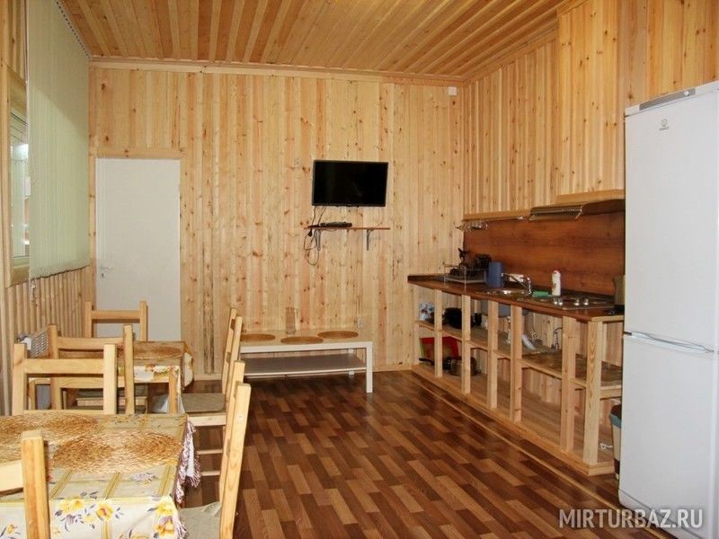На турбазе находится ресторан, также питание может осуществляться вами самостоятельно, так как в каждом доме и в каждом номере гостиницы имеются оборудованные кухни.