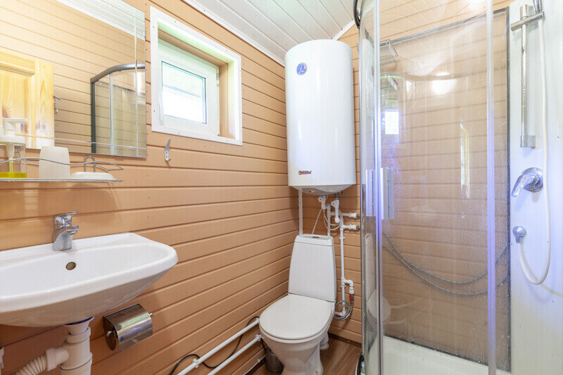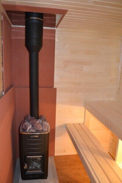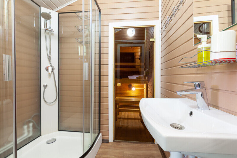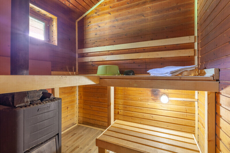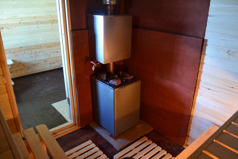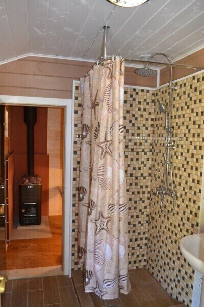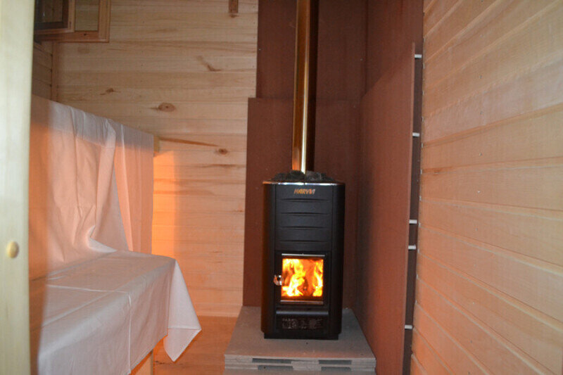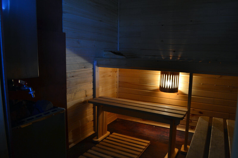 Дровяная сауна с финской печкой. Совмещённый душ туалет.