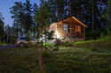 Дровяная сауна с финской печкой. Совмещённый душ туалет. Рядом с коттеджем находится мангал и поленница с дровами.