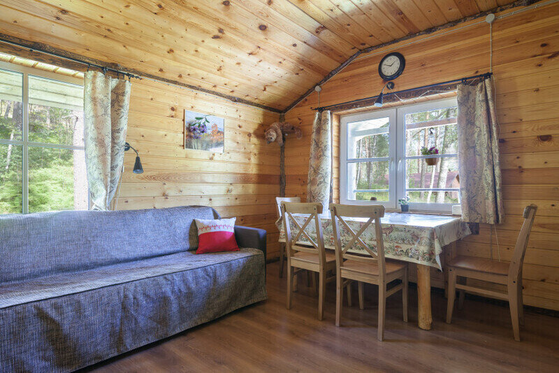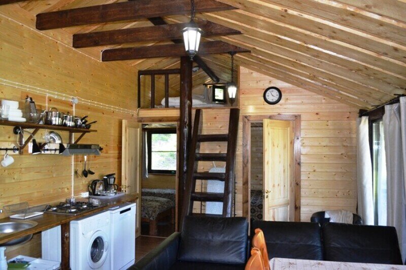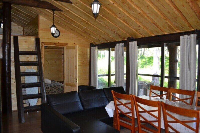 Отдыхающие могут расположиться в уютных благоустроенных домиках. Они оснащены всем необходимым для проживания с комфортом: удобными кроватями с постельным бельём, собственной ванной комнатой с горячей водой и полотенцами, а также камином, телевизором и бесплатным Wi-Fi.