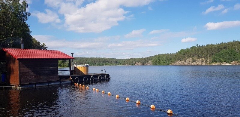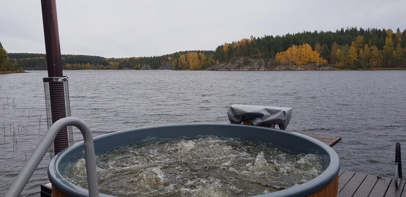 Читать полностьюГости базы отдыха Лумиваара могут арендовать купель вместе с баней, которая находится на плаву. Купель рассчитана на четырех человек, она представляет собой чан с подогретой водой, температура которой составляет около 37 градусов, также есть гидромассаж, который как и подсветка купели включается отдельными кнопками.
