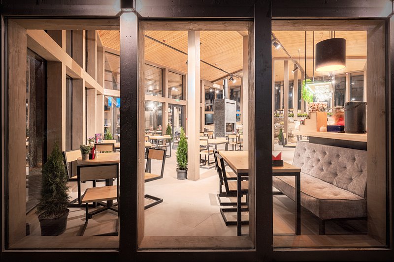 Ресторан рассчитан на 50 посадочных мест, с уличной террасой и «чилл-зоной». Внутри ресторана находится настоящая скала, по которой стекает водопад, что добавляет еще большее единение с природой.