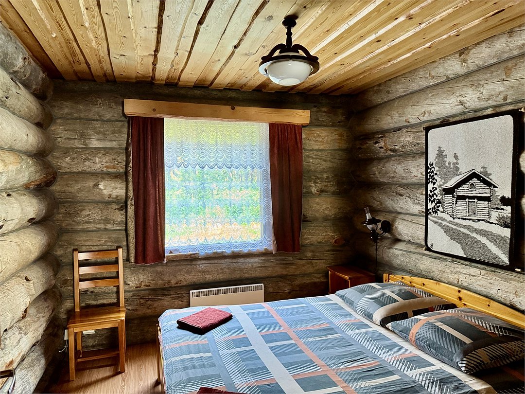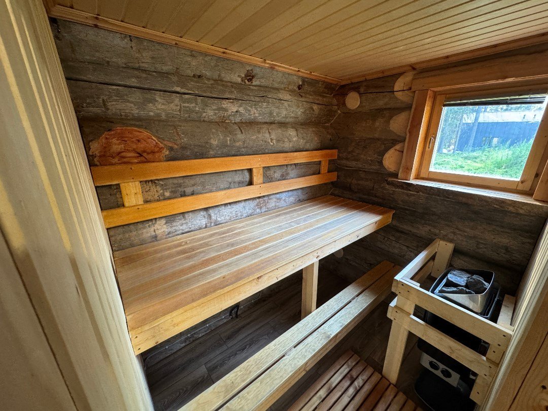 Сауна, камин, 2 спальни, гостиная совмещенная с кухней со всем необходимым для приготовления пищи, холодильник, ЖК телевизор, душевая кабина, терраса.