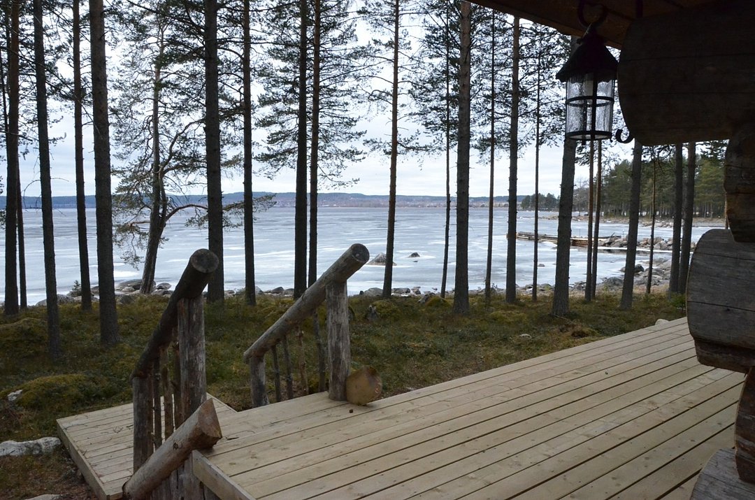 Эксклюзивный, экологический коттедж ручной работы из сухостойной сосны Kelo, в сосновом бору на берегу Онежского озера.