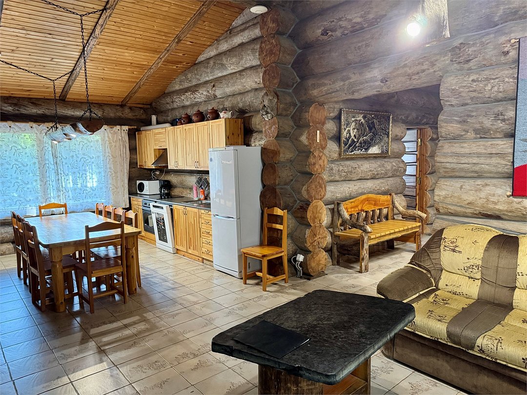 Просторный холл 50 м2, журнальный столик (вся мебель из натуральной сосны), кухня-гостнная, кухонный гарнитур, посуда, электрочайник, микроволновая печь, посудомоечная машина, стиральная машина, холодильник, цифровое ТВ.