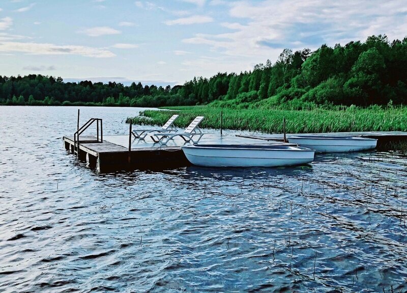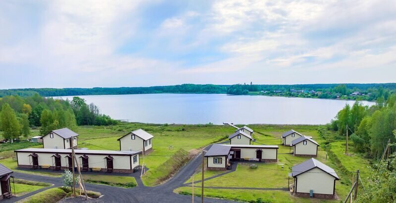 База отдыха Новинка расположена в одноимённой деревне на берегу живописного озера в окружении соснового леса.