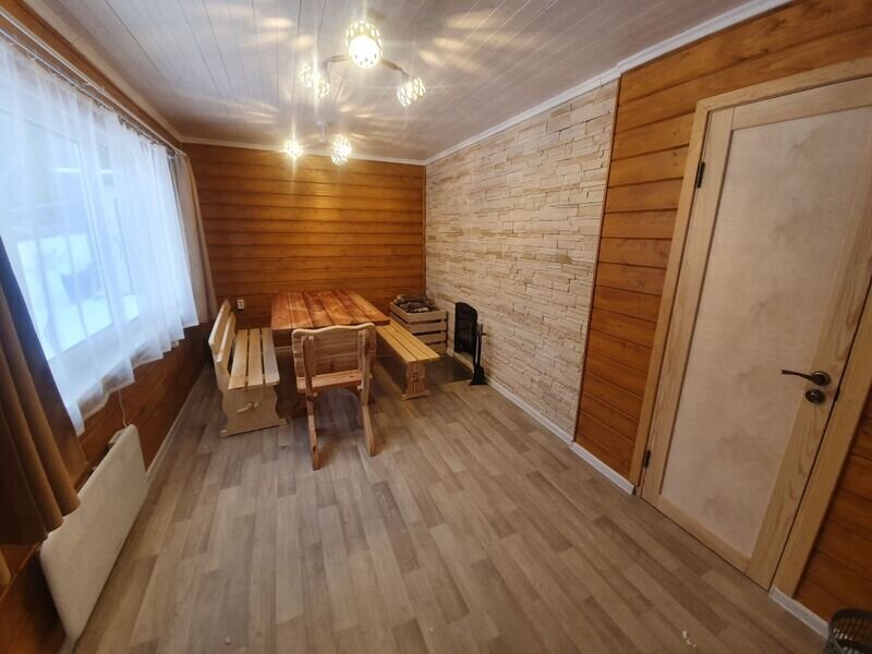 К услугам гостей доступна просторная баня на берегу озера. В бане комфортная дровяная парная на 6 человек, с отдельной помывочной и зоной отдыха с большим столом.