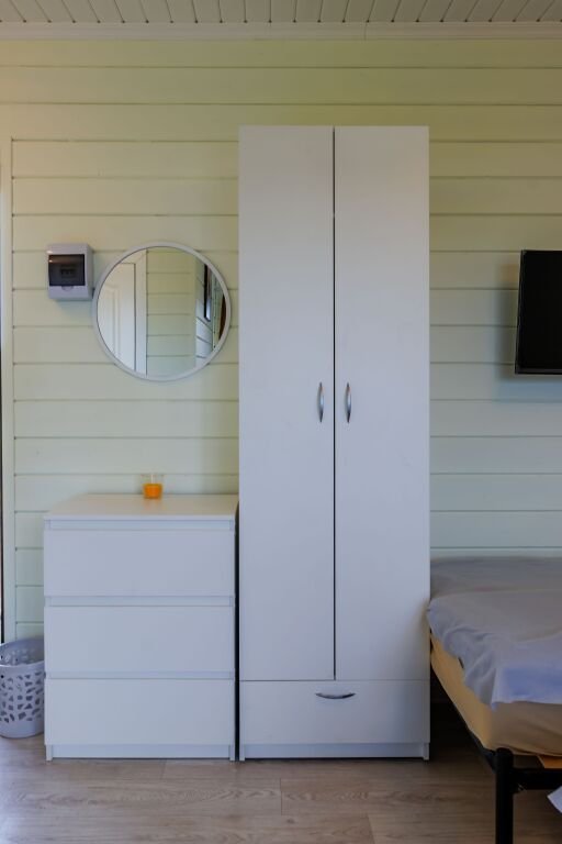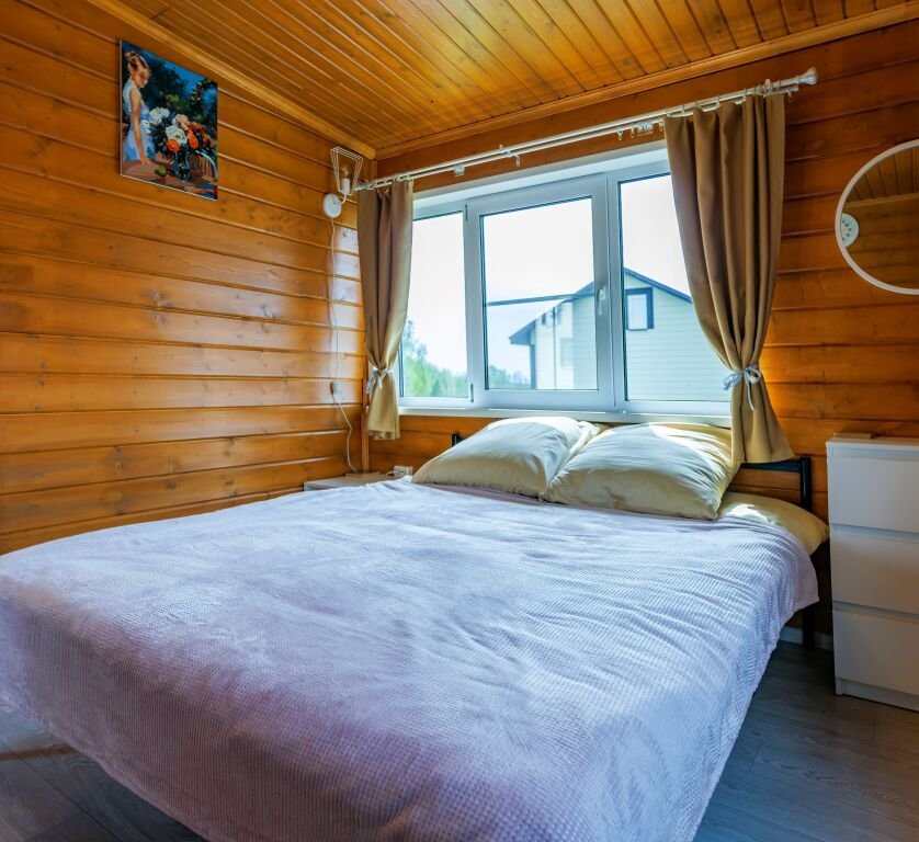 Коттедж с двумя отдельными комнатами и кухней гостиной, в которой удобно разместится дружная компания или большая семья. В одной из комнат располагается двухъярусная кровать и отдельно стоящая односпальная кровать, в соседней комнате полноценная двуспальная комфортная кровать. В Кухне гостиной расположился раскладной диван и удобная мини кухня со всем необходимым.