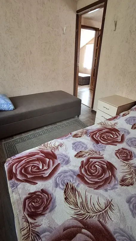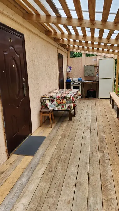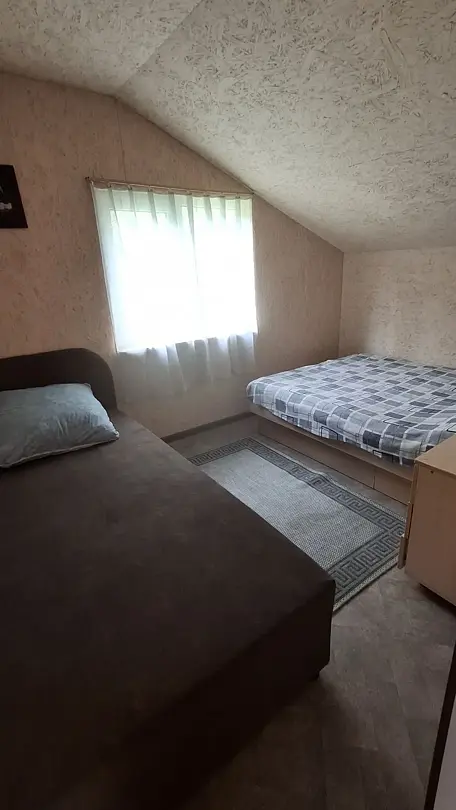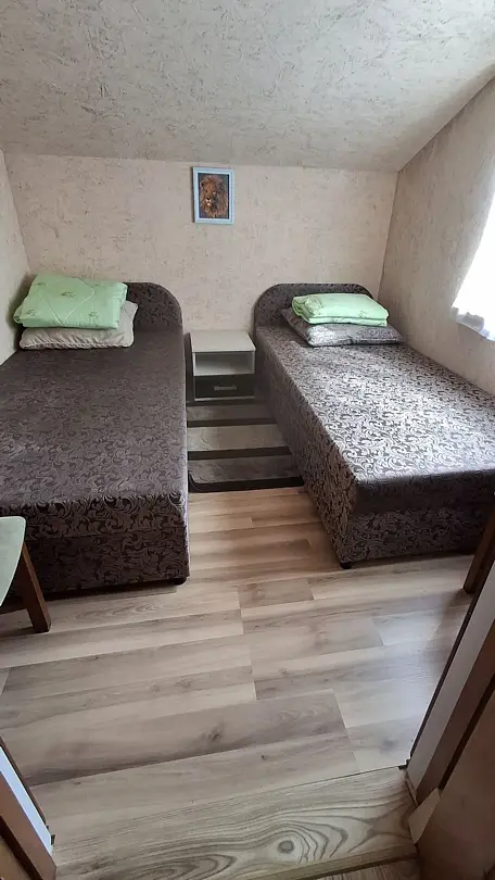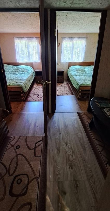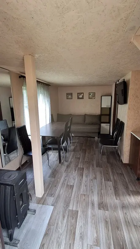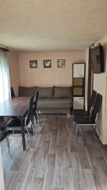 Дом рассчитан на комфортное проживание до шести человек. Есть все для комфортного отдыха: телевизор, холодильник, постельное белье, необходимый набор посуды.