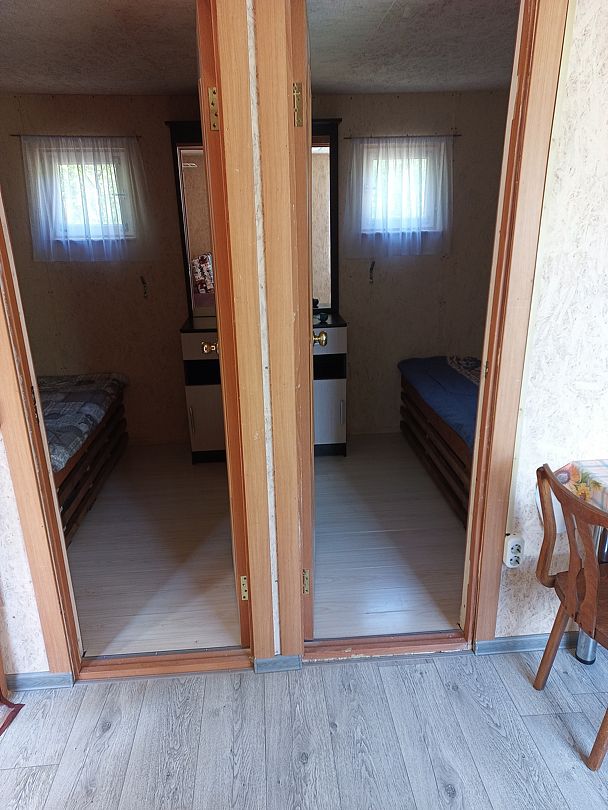 Дом рассчитан на комфортное проживание до пяти человек. В доме две изолированные комнаты плюс кухня-гостиная с дополнительным пятым местом.