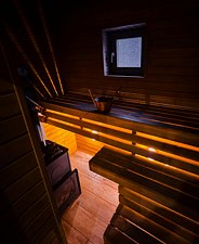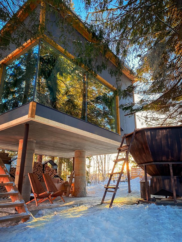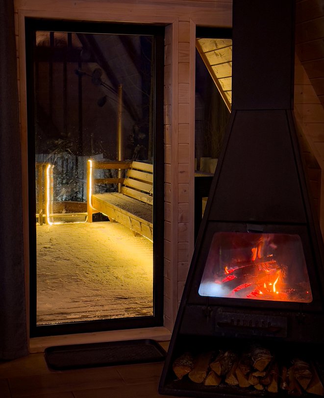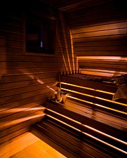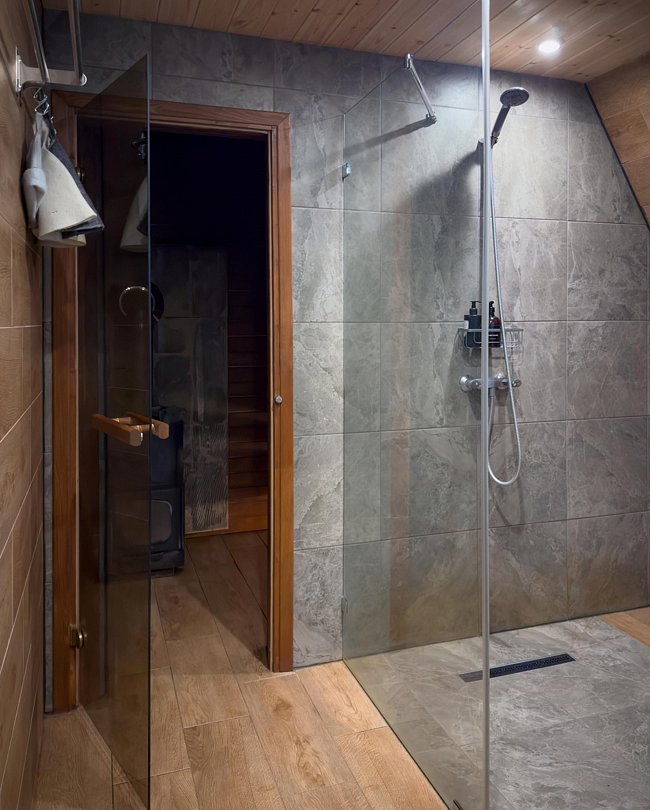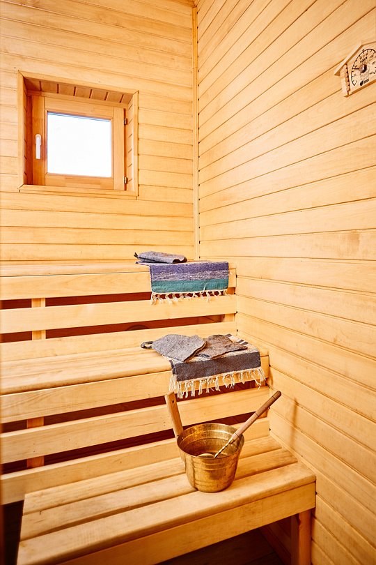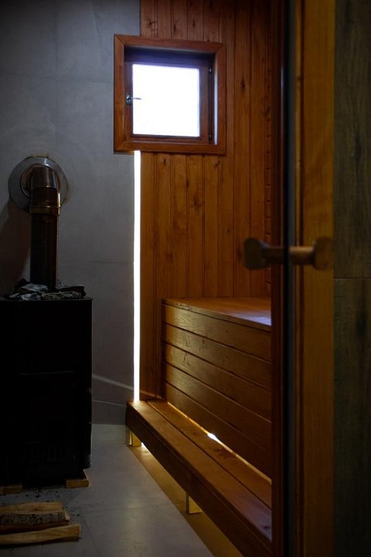 Во многих вариантах проживания предусмотрена индивидуальная сауна. Гостям предлагается расслабиться и насладиться сеансом парения в уютной и уединенной обстановке, не выходя из дома.