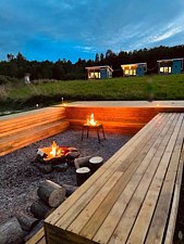 Кемпинговые площадки расположены всего в ста метрах от домиков и оборудованы мангалами, деревянными настилами, электричеством, питьевой водой, Wi-Fi, душем и туалетом. Дрова для костров предоставляются бесплатно.