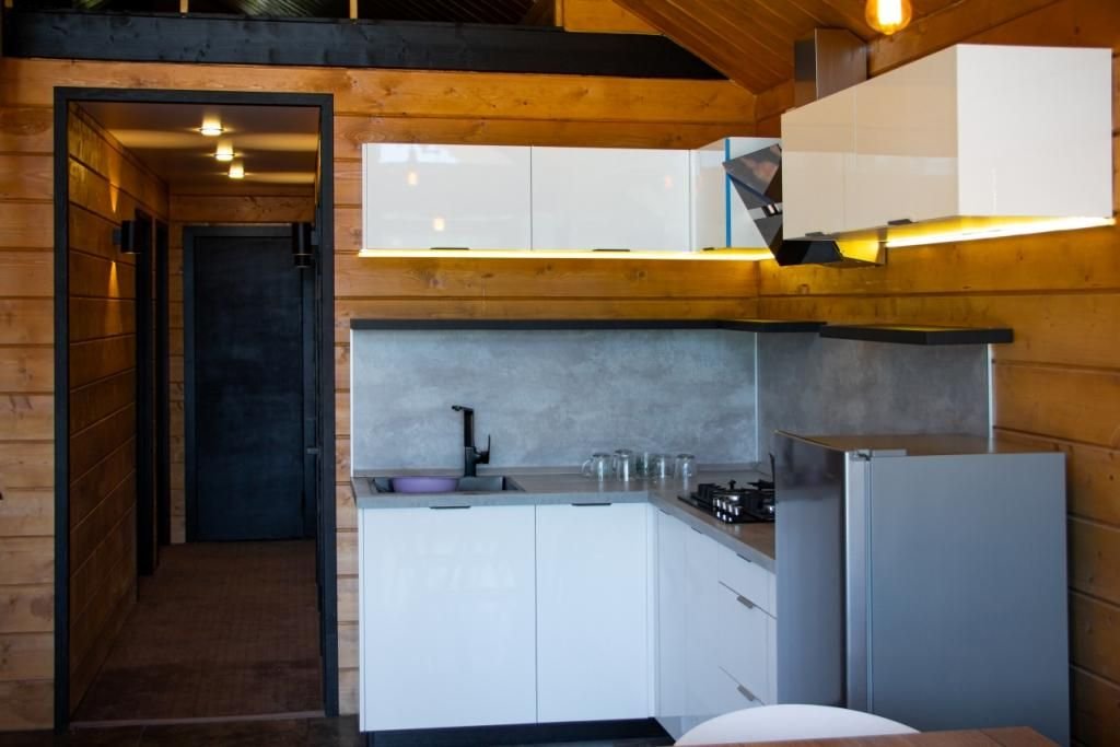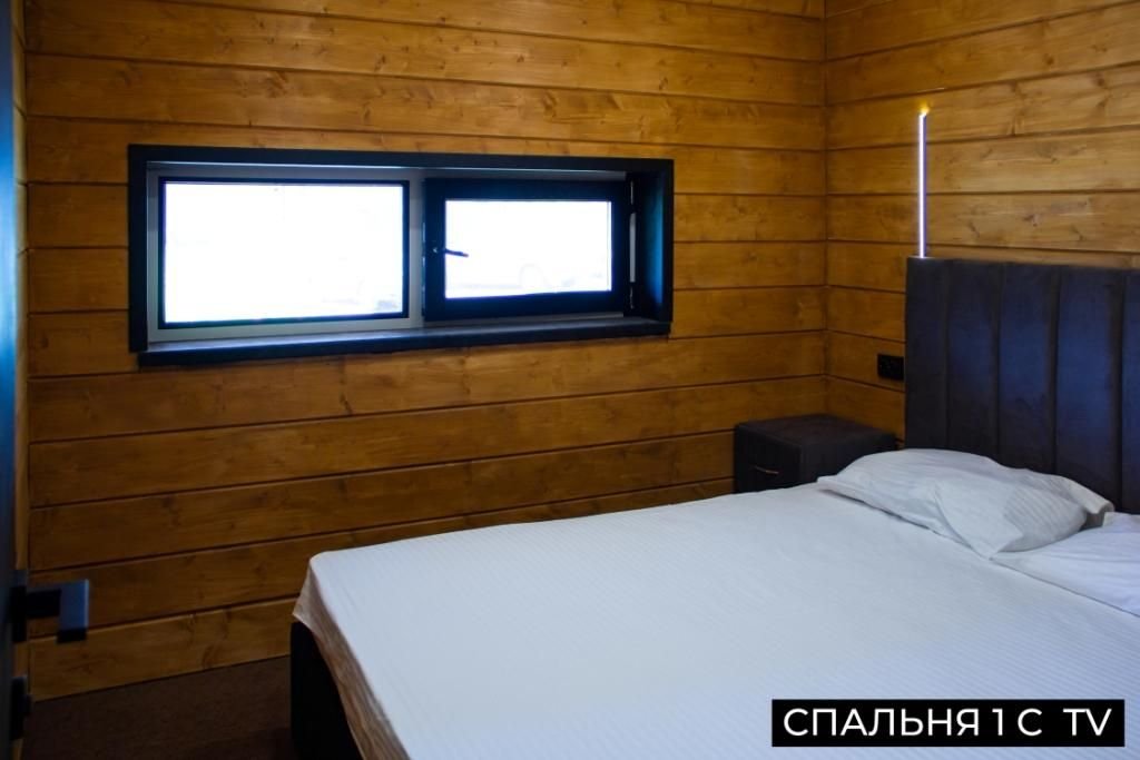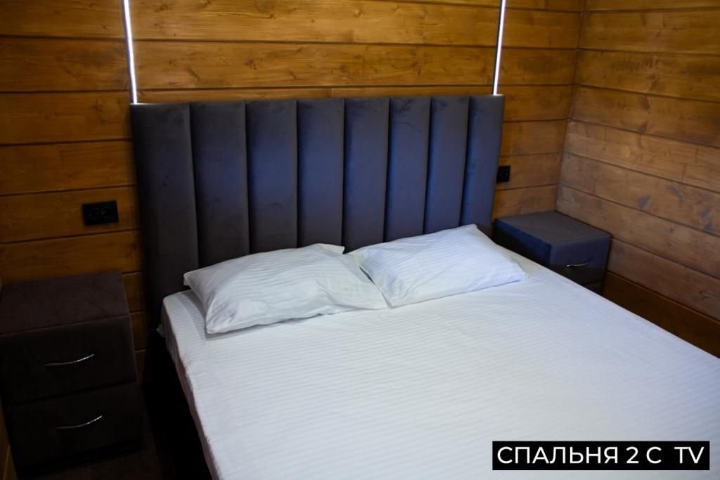 Дом (65 м²): одна спальня, верхняя открытая спальня (мансарда), большая гостиная. Домик оборудован: камином, сауной на дровах, банным чаном, большой террасой, Wi-Fi, мангальной зоной.