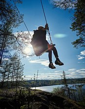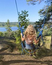 Детские качели — спокойное и оздоровительное развлечение на свежем воздухе: плавное раскачивание среди карельской природы дарит умиротворение и радость. Доступны при посещении троллея; сезон работы — с мая по сентябрь, за исключением сильного ветра, ливней, ураганов и технических работ.