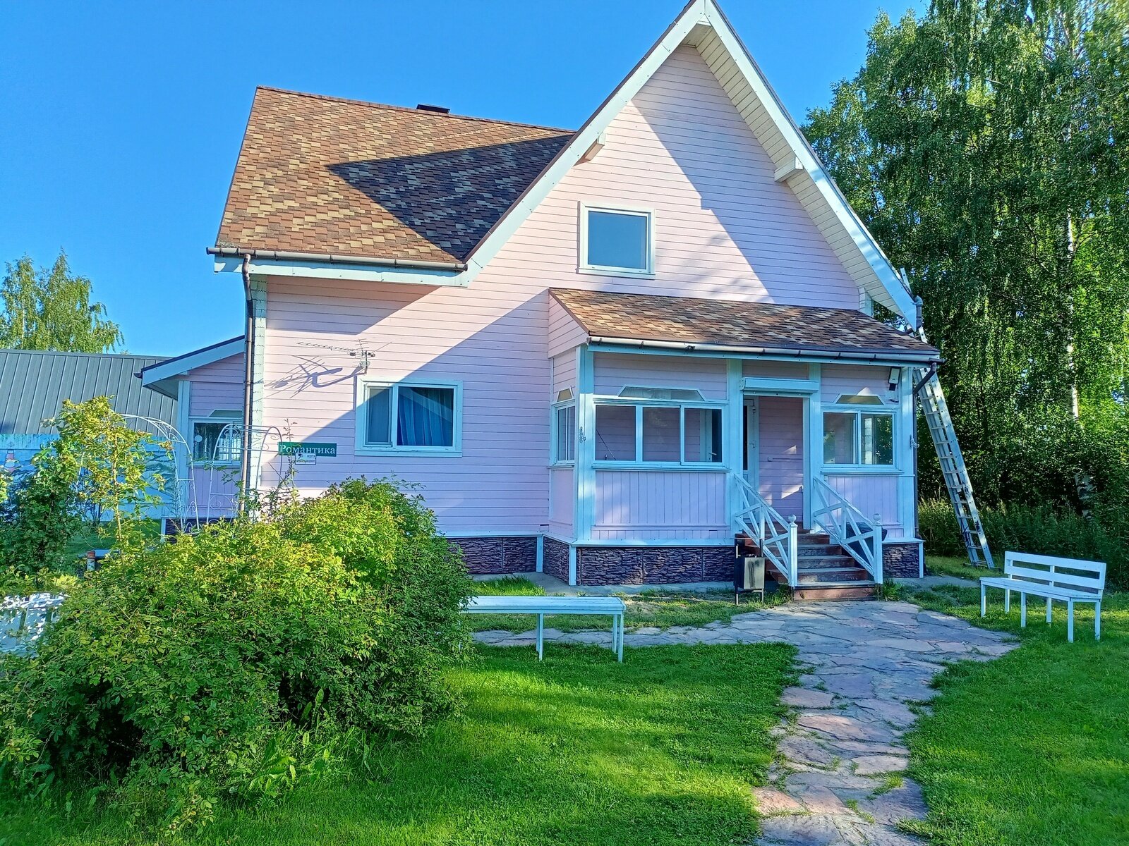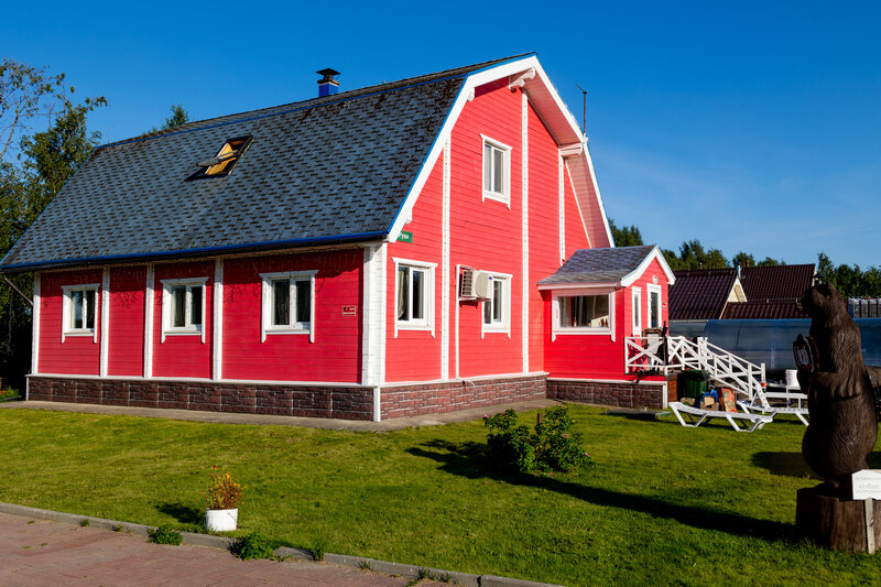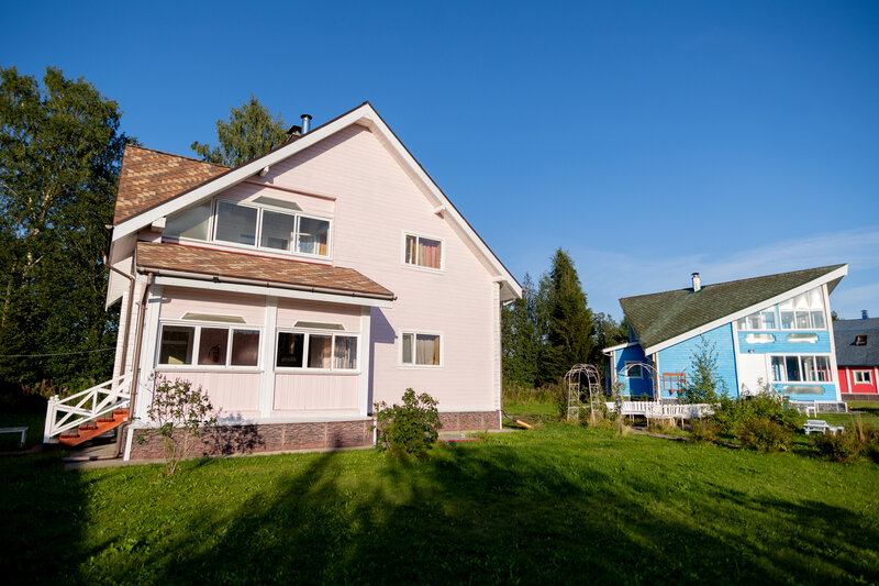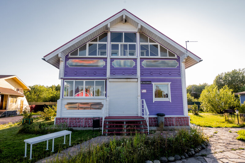 Когда попадете в конечный пункт назначения - д. Суйсарь, увидите ярко-желтый дом, на нем висит баннер зеленого цвета "Загородный комплекс Суйсарь". Добро пожаловать!