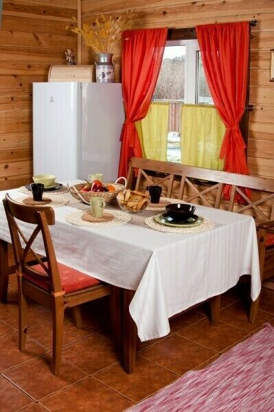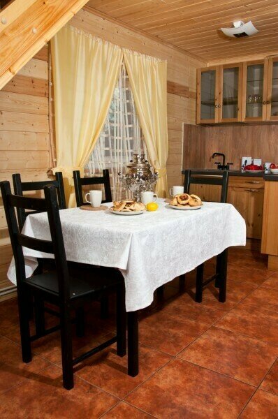 Уют домика «Кантри» начинается с его «сердца» — кухни, где за обеденным столом с аппетитной выпечкой может собраться дружная семья или теплая компания друзей. Плита, холодильник, электрочайник, посудомоечная машина, микроволновая печь, комплекты посуды - на нашей кухне вы найдете все, что может понадобиться для приготовления и принятия пищи.