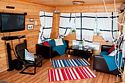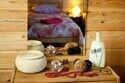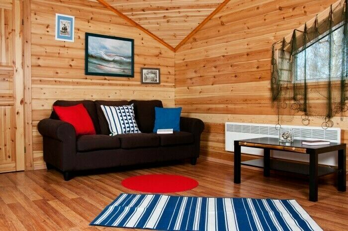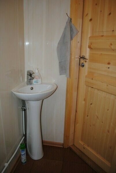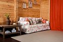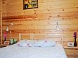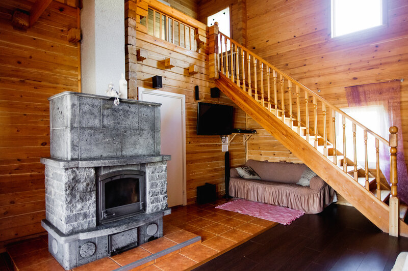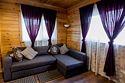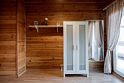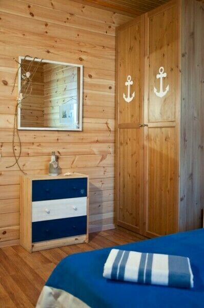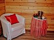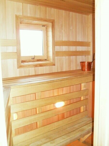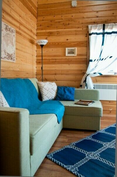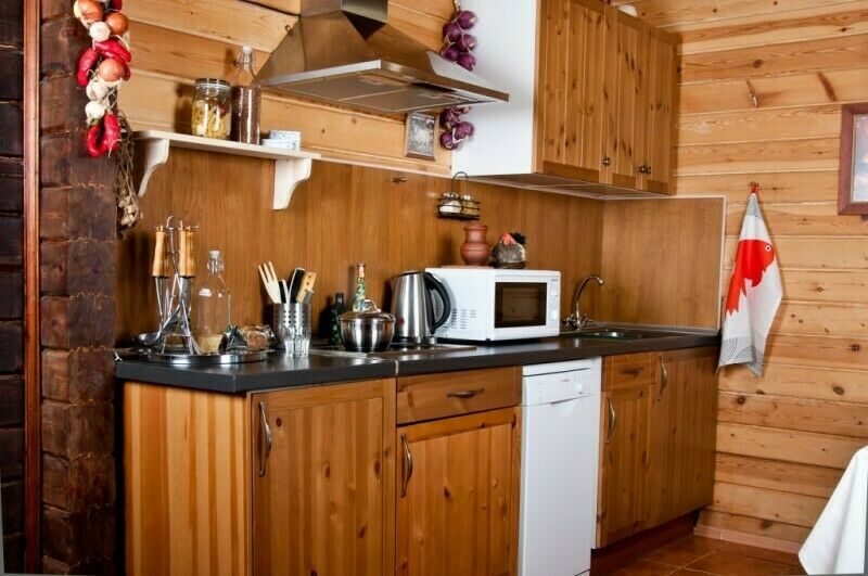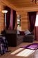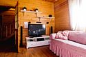 - спальня с двуспальной кроватью, две прихожих, санузел, совмещенные сауна и душевая, большая гостиная, совмещенная с кухней. Спутниковое ТВ, домашний кинотеатр, DVD, большой камин.