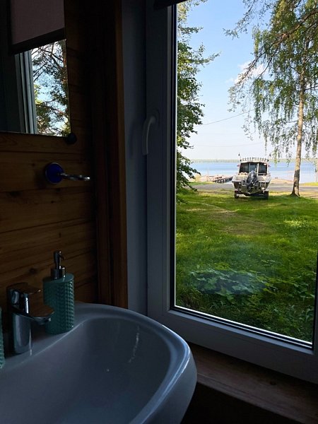 Шашлычный Домик № 1 — выход на пирс. Шашлычный Дом № 2 — выход на балкон (вид на озеро).