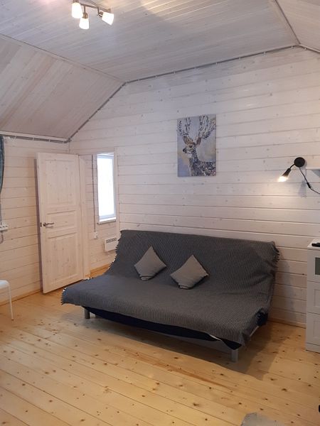 Во всех домах стоит новая мебель от ИКЕА: двуспальная кровать, раскладной двуспальный диван, обеденный стол, стулья.