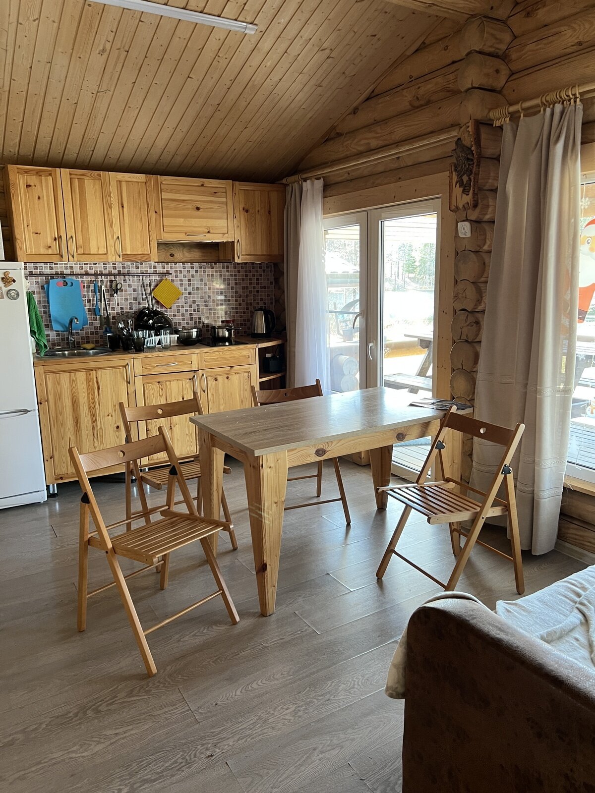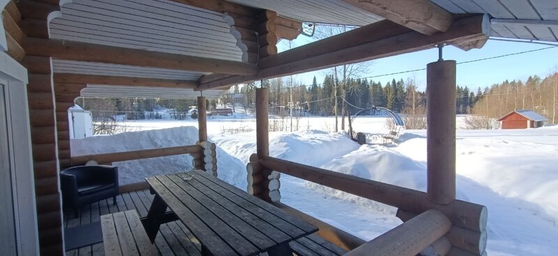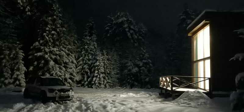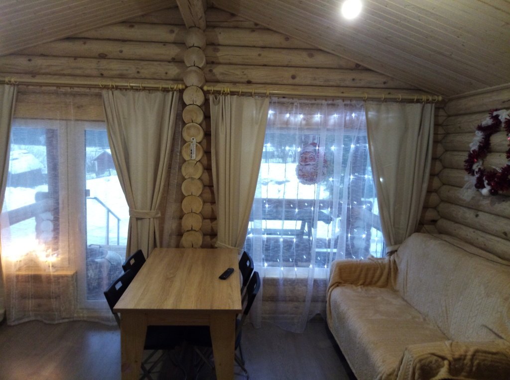 Отдых с друзьямиДостоинстваДомик находится в 10 минутах езды от горного парка Рускеала. В домике можно проживать с маленькой собачкой. Домики находиться на берегу маленького красивого озера, их можно подсвечивать гирляндами и огоньками. Есть веранда с большим обеденным столом. На кухне есть всё необходимое для готовки. Но к ближайшему магазину 1,5 км (еду лучше привозить с собой – холодильник вместительный).
