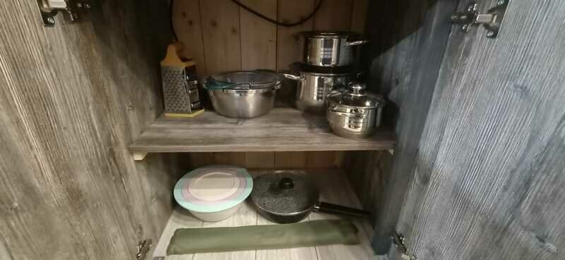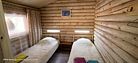 Максимальная вместимость 5 чел. В зале расположен двуспальный диван. В две односпальные кровати, которые можно сдвинуть. Душ, туалет с холодной и горячей водой, сушилка для одежды. Оборудованная кухня (холодильник, посуда для приготовления еды, варочная панель, электрический чайник. Около дома есть терраса с мангалом и барбекю.