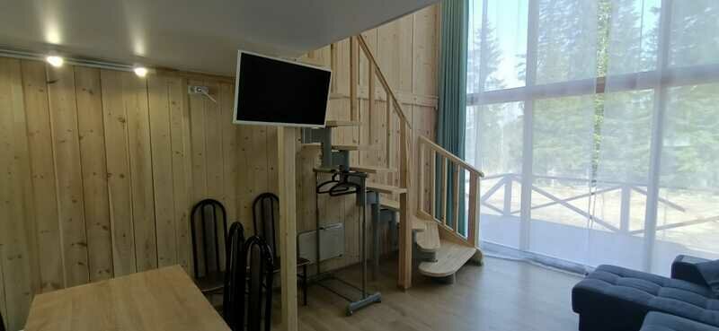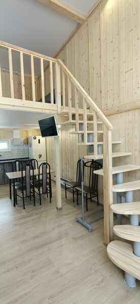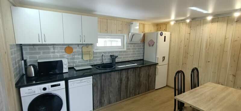 Двухэтажный коттедж, максимальной вместимостью 6 чел. Душ, туалет с холодной и горячей водой, сушилка для одежды. Оборудованная кухня (холодильник, посуда для приготовления еды, варочная панель, электрический чайник. Около дома есть терраса с мангалом и барбекю.