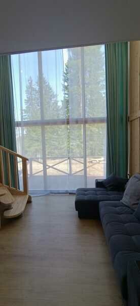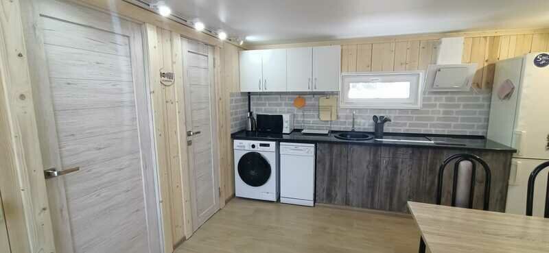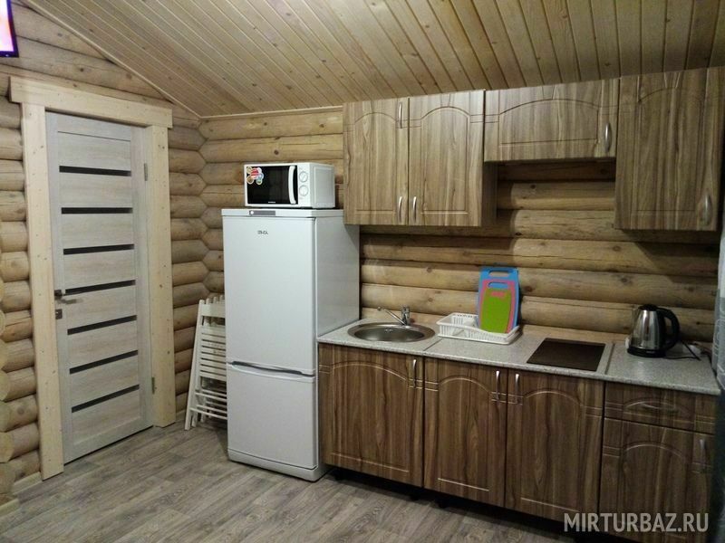 Максимальная вместимость 5 чел. В зале расположен двуспальный диван. В спальне двуспальная кровать. Душ, туалет с холодной и горячей водой, сушилка для одежды. Оборудованная кухня (холодильник, посуда для приготовления еды, варочная панель, электрический чайник. Около дома есть терраса с мангалом и барбекю.