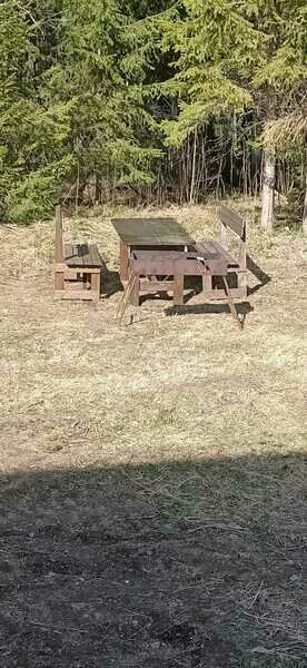 На берегу стоит мангальная беседка (два мангала и коптилка, решётки гриль).