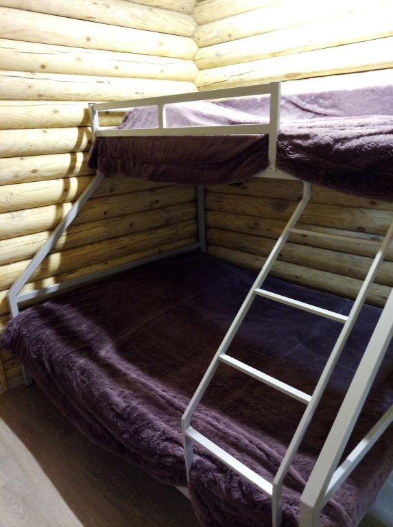 - в спальне двухярусная кровать с двуспальным местом внизу и односпальным сверху;