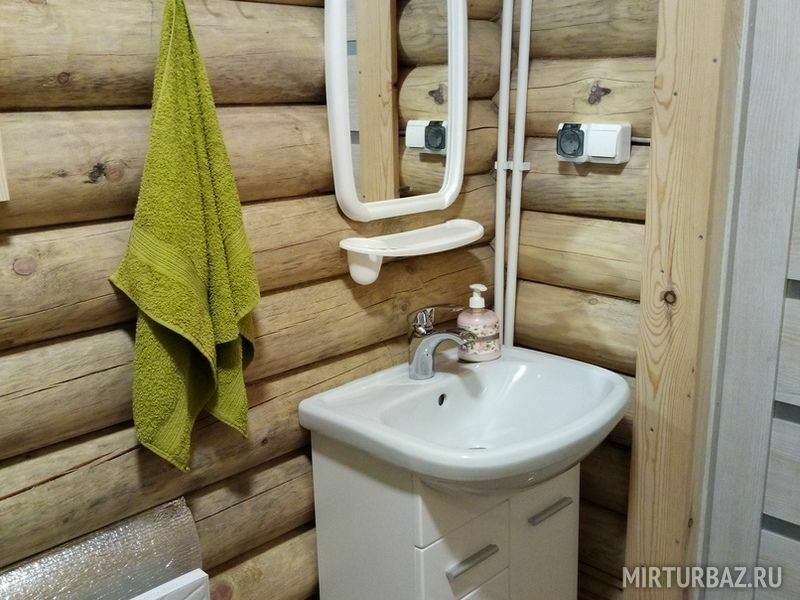 Максимальная вместимость 5 чел. В зале расположен двуспальный диван. В спальне двухъярусная кровать (снизу двуспальное место, вверху односпальное). Душ, туалет с холодной и горячей водой, сушилка для одежды. Оборудованная кухня (холодильник, посуда для приготовления еды, варочная панель, электрический чайник. Около дома есть терраса с мангалом и барбекю.