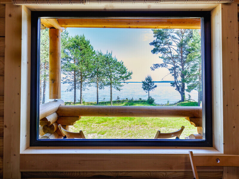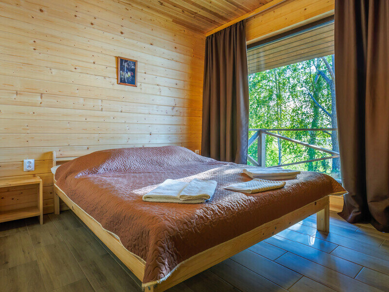 - Номера новые, обшиты деревом, с большим панорамным окном с видом на озеро. Есть душ хорошая ванная комната со всеми удобствами. В номере плоский телевизор со спутниковым телевидением, есть розетки у кроватей, фумигатор, сейфа нет. Уборка по просьбе.