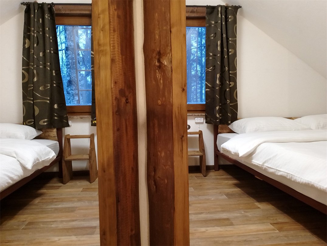 На втором этаже или, как его еще называют «Финской антресоли», расположены 2 двуспальные кровати с прикроватными тумбочками и ночным светом.