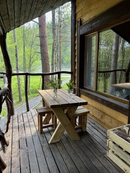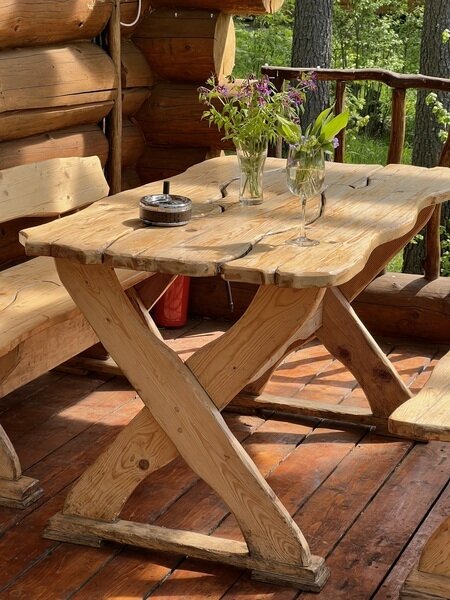 Так же для Вас большая открытая панорамная веранда со столом и скамейками ручной работы.