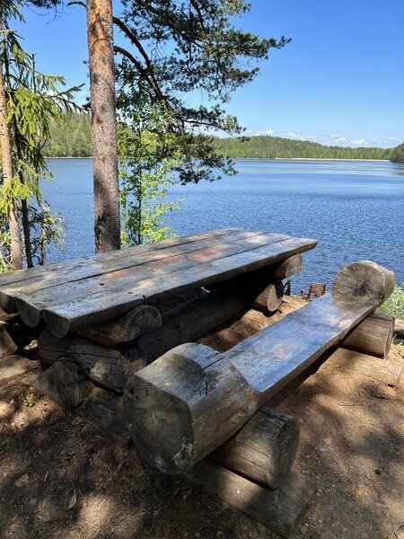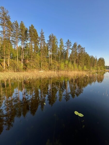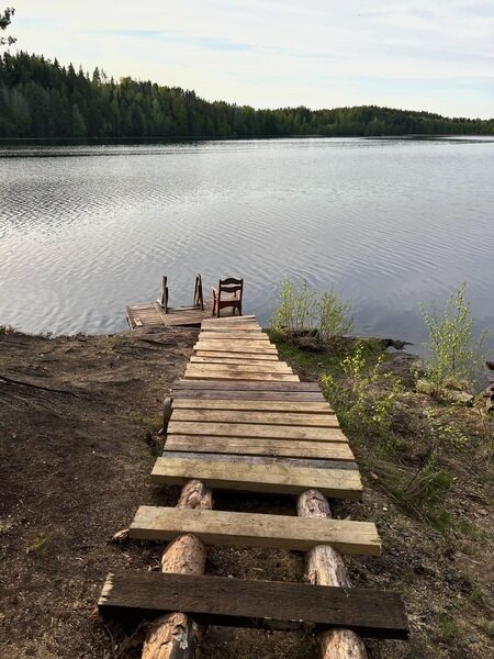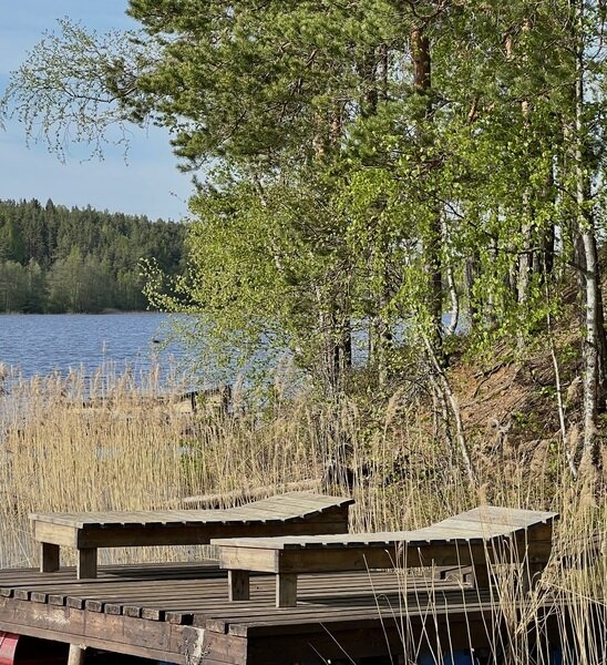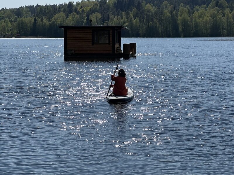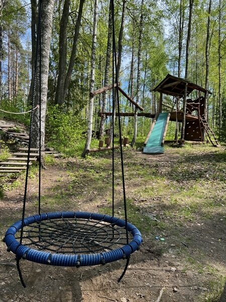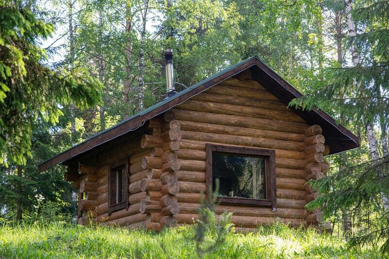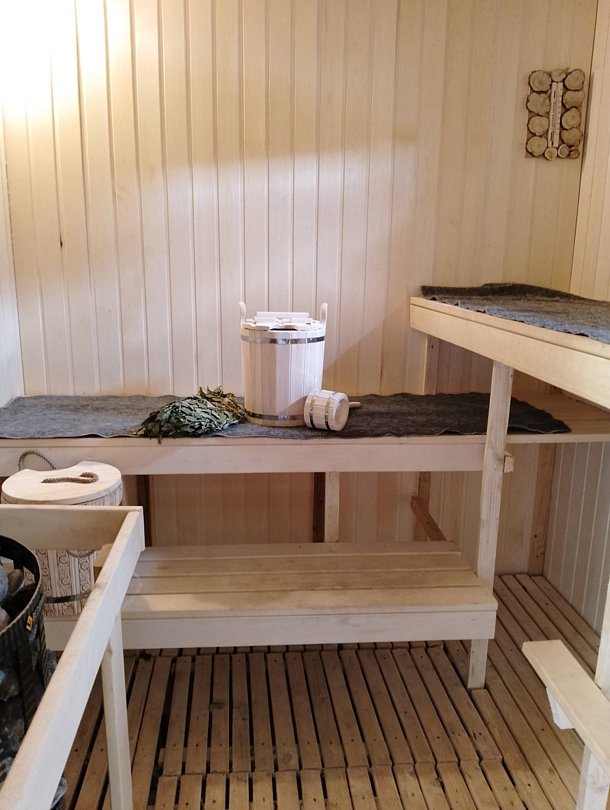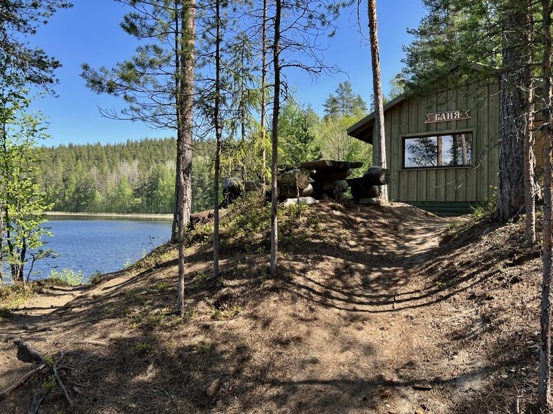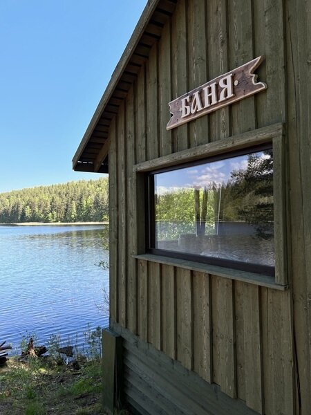 Баня находится в отдалении от коттеджей, за пригорком прямо на берегу озера Светоч (Ханкасъярви). Гости после парения могут окунуться в чистейшую воду озера как летом, так и