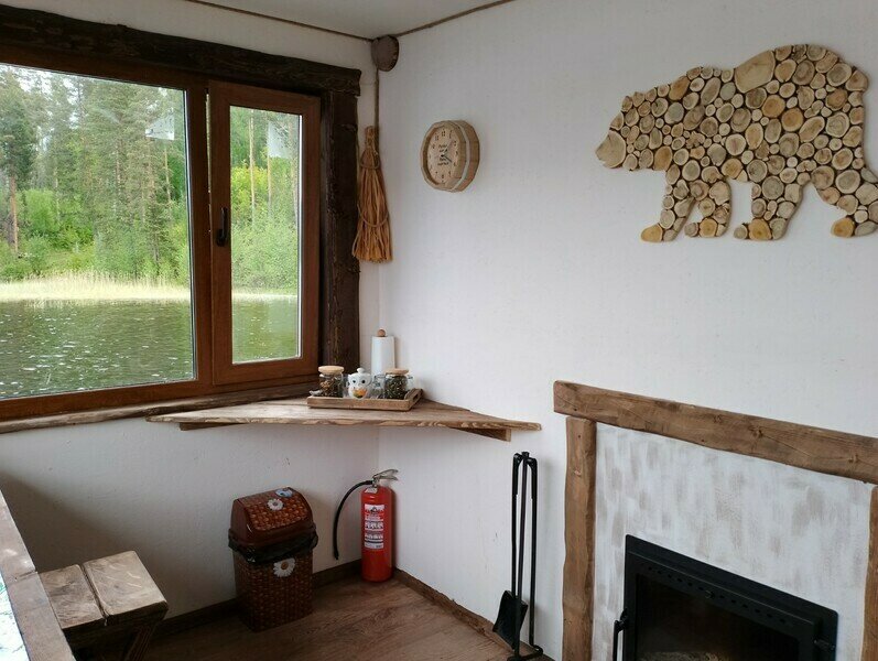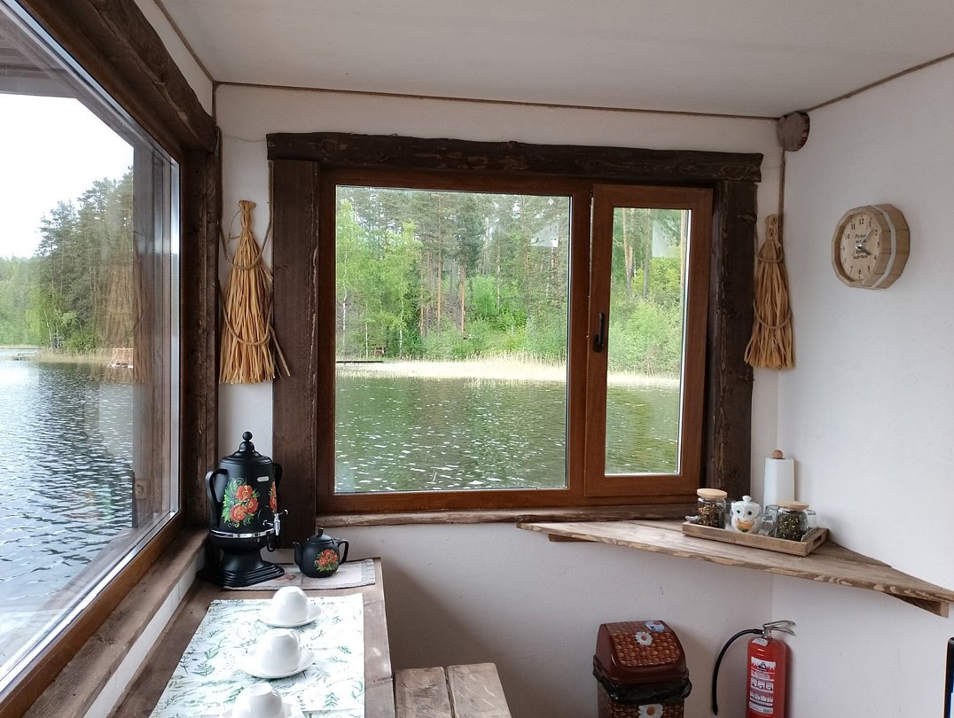 Баня с панорамными окнами на берегу озера. Рассчитана на компанию до 8 человек.