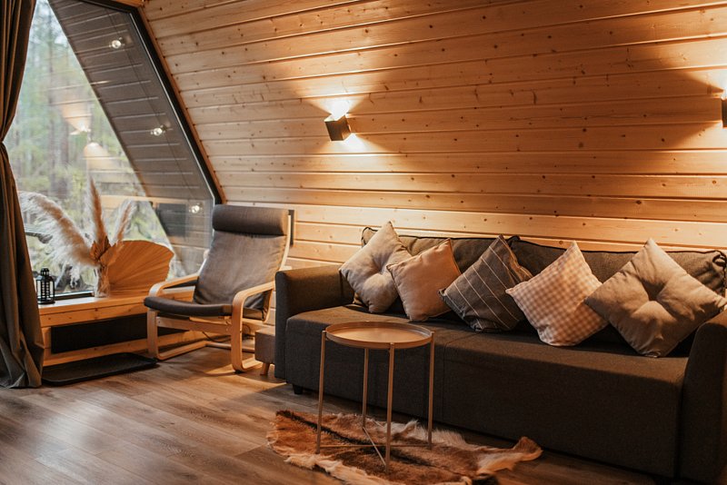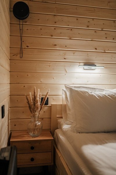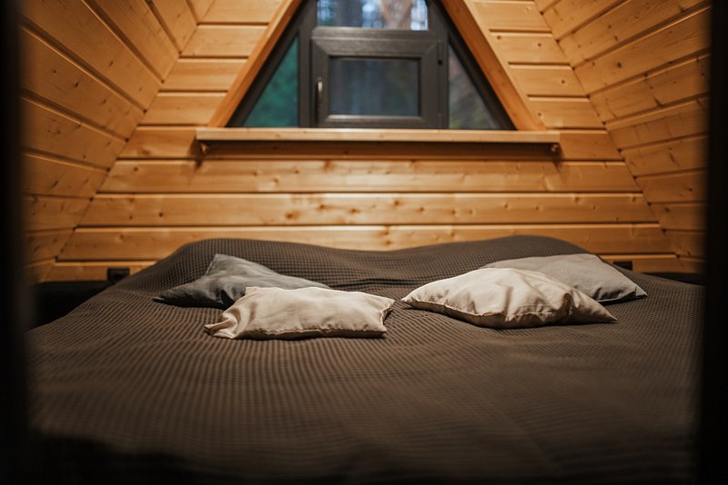 Дом треугольной формы, стильный и удобный формат глэмпинга. Рассчитан на 4 человек.
